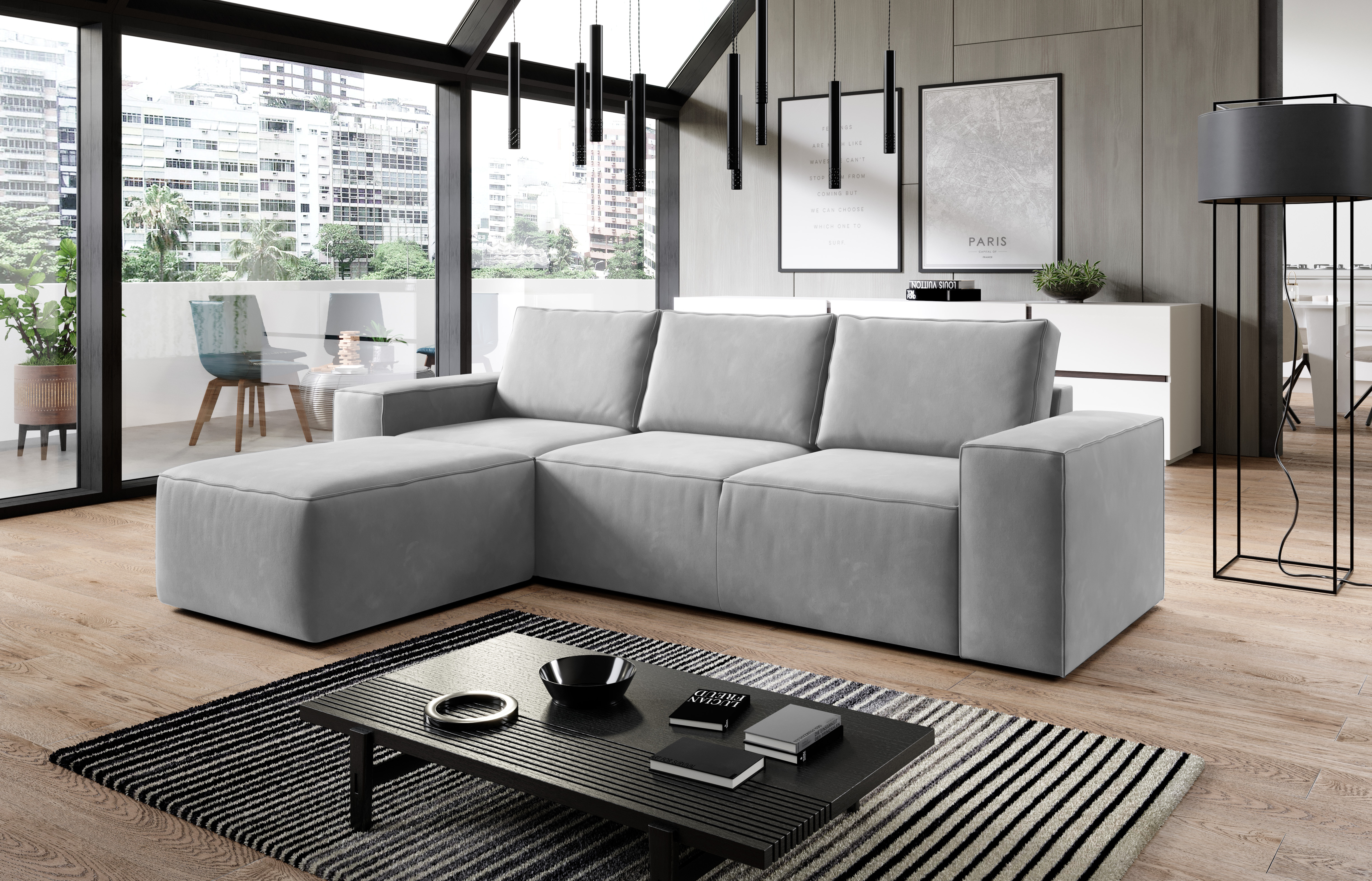 Sedací souprava Silla v provedení Sola 4  - lesklý vzhled a jemná vazba látky, pevná a odolná proti oděru, nebledne bez stínového efektu po přejetí rukou. Souprava má sedáky vyplněné HR pěnou a zádové polštáře pěnou T25. Rozkladem vznikne ložná plocha 243x128 cm. Sedací souprava je  vybavena úložným prostorem o rozměrech: 158 x 54 x 19 cm.