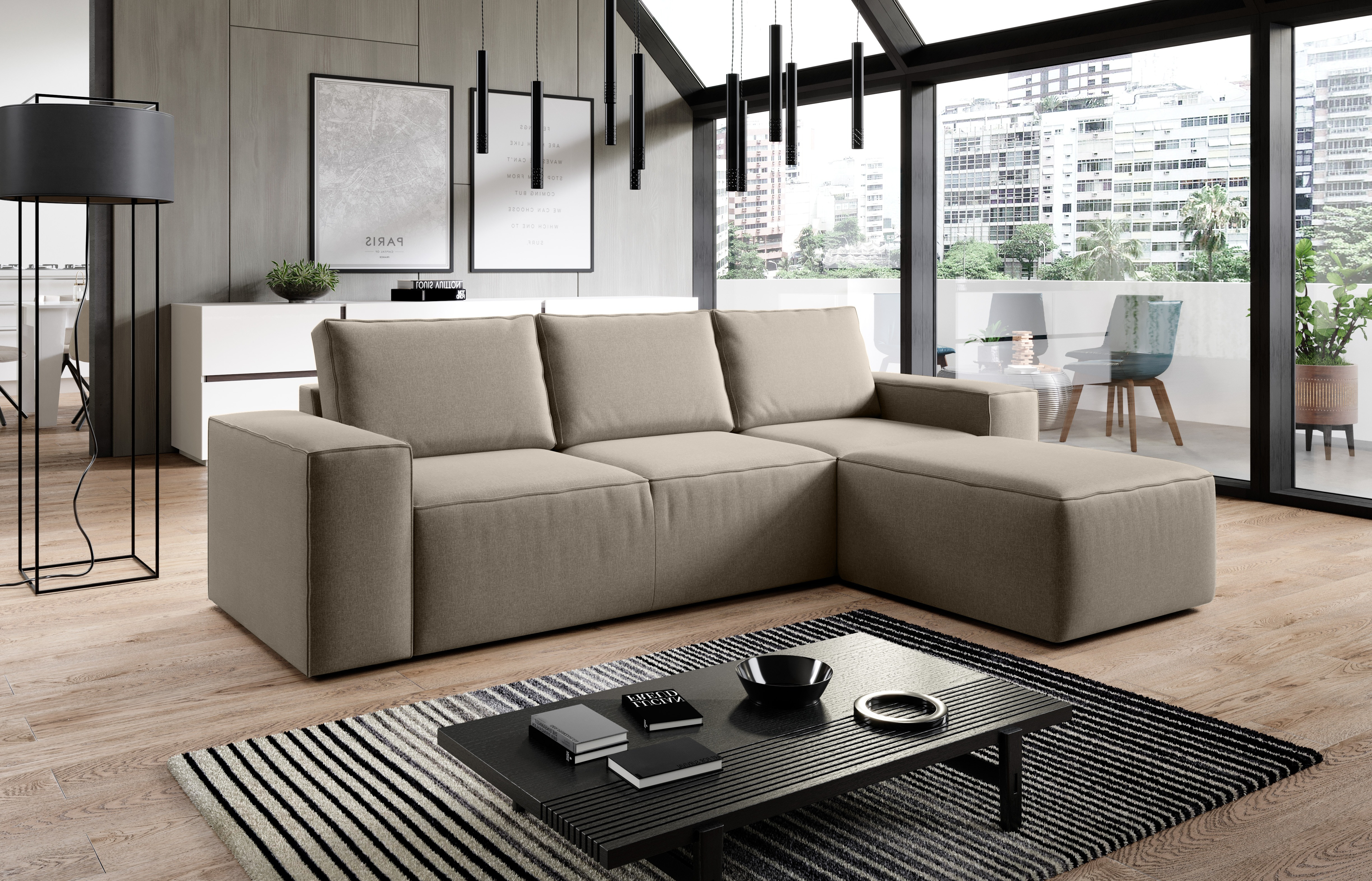 Sedací souprava Silla v provedení Vero 18 - příjemná na dotek a odolná látka, dostatečně pevná, připomíná lněné plátno, nevybledne. Souprava má sedáky vyplněné HR pěnou a zádové polštáře pěnou T25. Rozkladem vznikne ložná plocha 243x128 cm. Sedací souprava je  vybavena úložným prostorem o rozměrech: 158 x 54 x 19 cm.