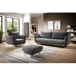 Sedací souprava v dezénu Gojo 5 se skládá z pohovky, křesla a taburetu. Sedáky jsou vyrobeny z vysoce elastické HR pěny a opěradlo pohovky je vyrobeno z pěny T25. Pohovka se pomocí DL mechanismu dá rozložit na spací plochu 200x145 cm a disponuje úložným prostorem. Nohy pohovky, taburetu a křesla jsou z černé oceli s výškou až 13 centimetrů. Každý prvek setu lze zakoupit i samostatně.