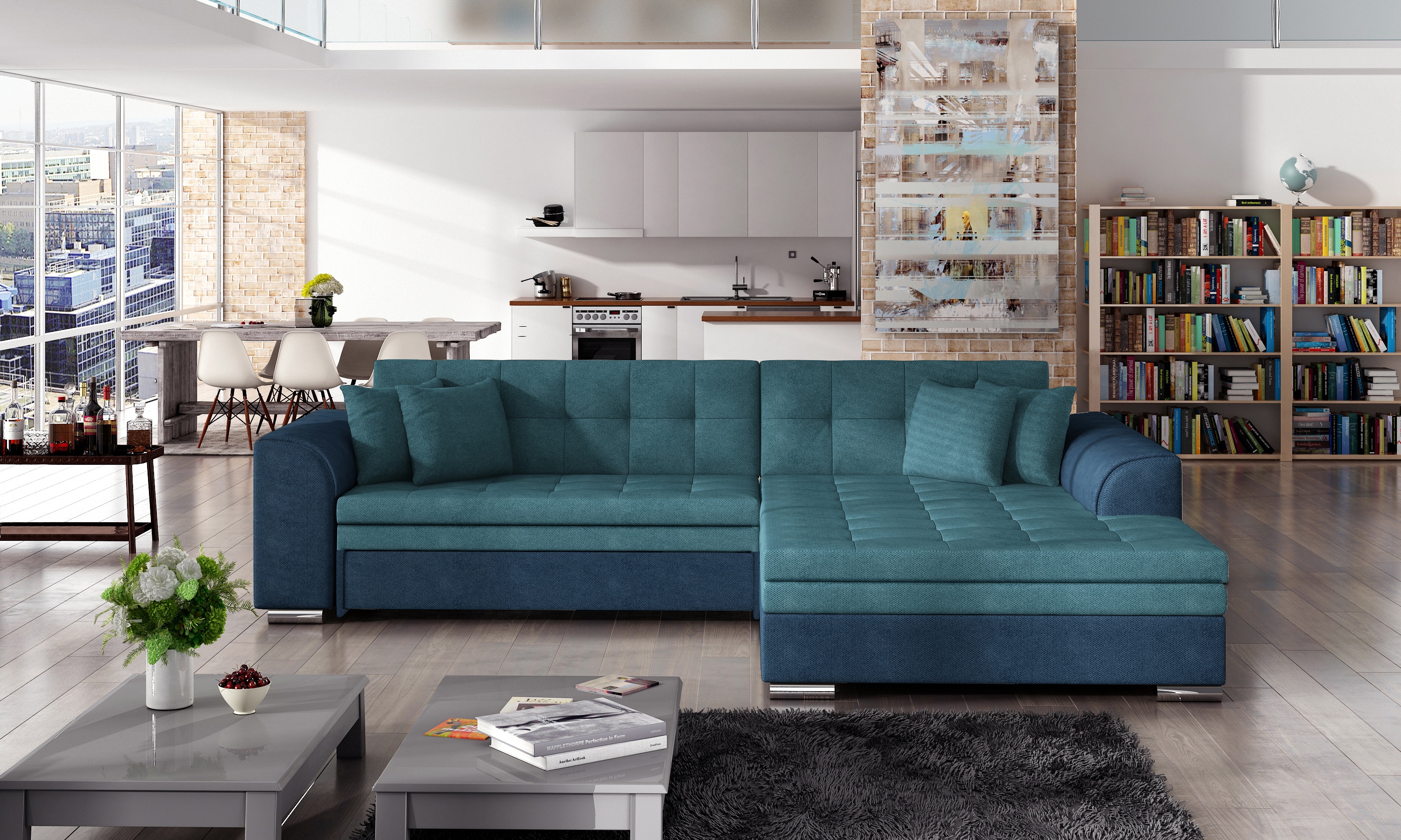 Prostorná rohová sedací souprava Sorento je vyrobena z kombinace tvrdého a měkkého dřeva v dezénu látka Orinoco 85/Orinoco 80 (světlé modrá/tmavě modrá). Výrobce na pérování sedáku použil kvalitní pružiny faliste. Nožky jsou v moderním chromovém provedení. Výplň sedáku a opěrek je z kvalitní polyuretanové pěny T30, která zaručuje maximální pohodlí. Sedací soupravu lze rozložit a využít tak pro příležitostné přespání. Díky funkci spaní lze roh okamžitě přizpůsobit vašim potřebám a získat postel o rozměrech 210 x 126 cm. Navzdory nedostatku úložného prostoru pro ložní prádlo tento model funguje skvěle jako prostorné místo k odpočinku v noci. Rohová souprava Sorento je kombinací modernosti a pohodlí. Sedací souprava není určena do prostoru, nemá očalouněná záda (očalounění zad za příplatek, na dotaz). Potahová látka jako na hlavní fotografii, provedení pravé.