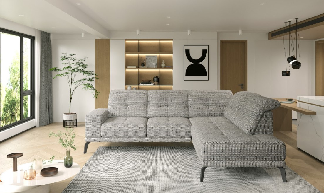 Rohovou sedací soupravu THEODORE lze využít k odpočinku a relaxaci po náročném dni. Umožňuje vám pohodlný odpočinek v leže nebo v sedě. Díky pevné konstrukci bude sloužit mnoho let a materiál, ze kterého je vyrobeno čalounění, se snadno čistí. Sedačka má regulovatelná opěradla. Výplň sedáku zajišťuje kvalitní HR pěna v kombinaci s vlnitými pružinami typu B. Sedačka stojí na 20 cm vysokých černých kovových nohách. Tuto sedací soupravu lze vyrobit v pravém či levém provedení. Potahová látka jako na hlavní fotografii.