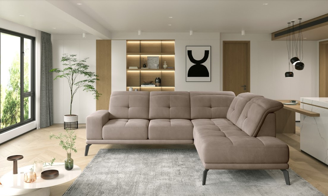 Rohovou sedací soupravu THEODORE lze využít k odpočinku a relaxaci po náročném dni. Umožňuje vám pohodlný odpočinek v leže nebo v sedě. Díky pevné konstrukci bude sloužit mnoho let a materiál, ze kterého je vyrobeno čalounění, se snadno čistí. Sedačka má regulovatelná opěradla. Výplň sedáku zajišťuje kvalitní HR pěna v kombinaci s vlnitými pružinami typu B. Sedačka stojí na 20 cm vysokých černých kovových nohách. Tuto sedací soupravu lze vyrobit v pravém či levém provedení. Potahová látka jako na hlavní fotografii.