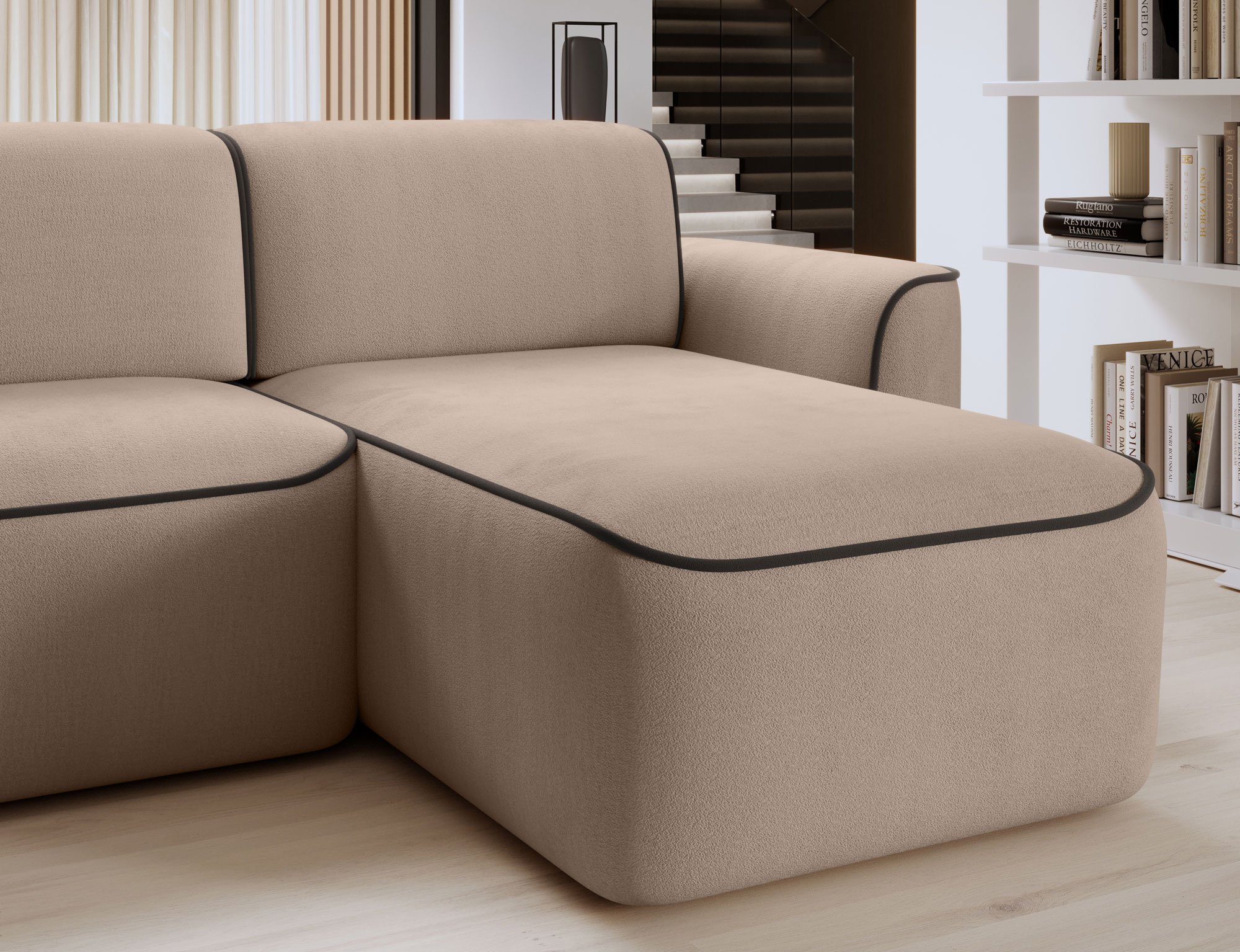 Sedací souprava Ume v provedení hlavní barva Amore 18/ obšití Velvetmat 22 má rám z borovicového dřeva. Sedák má vyrobený z odolné vysoce flexibilní HR pěny T3030. Opěradlo je vyrobeno z pěny T2540 + T2315. Je vybavena elektricky výsuvným sedákem. Nosnost pohovky 270kg. Nohy jsou plastové černé o výšce 2,5 cm. Provedení rohu pravé. Zboží je částečně smontováno.