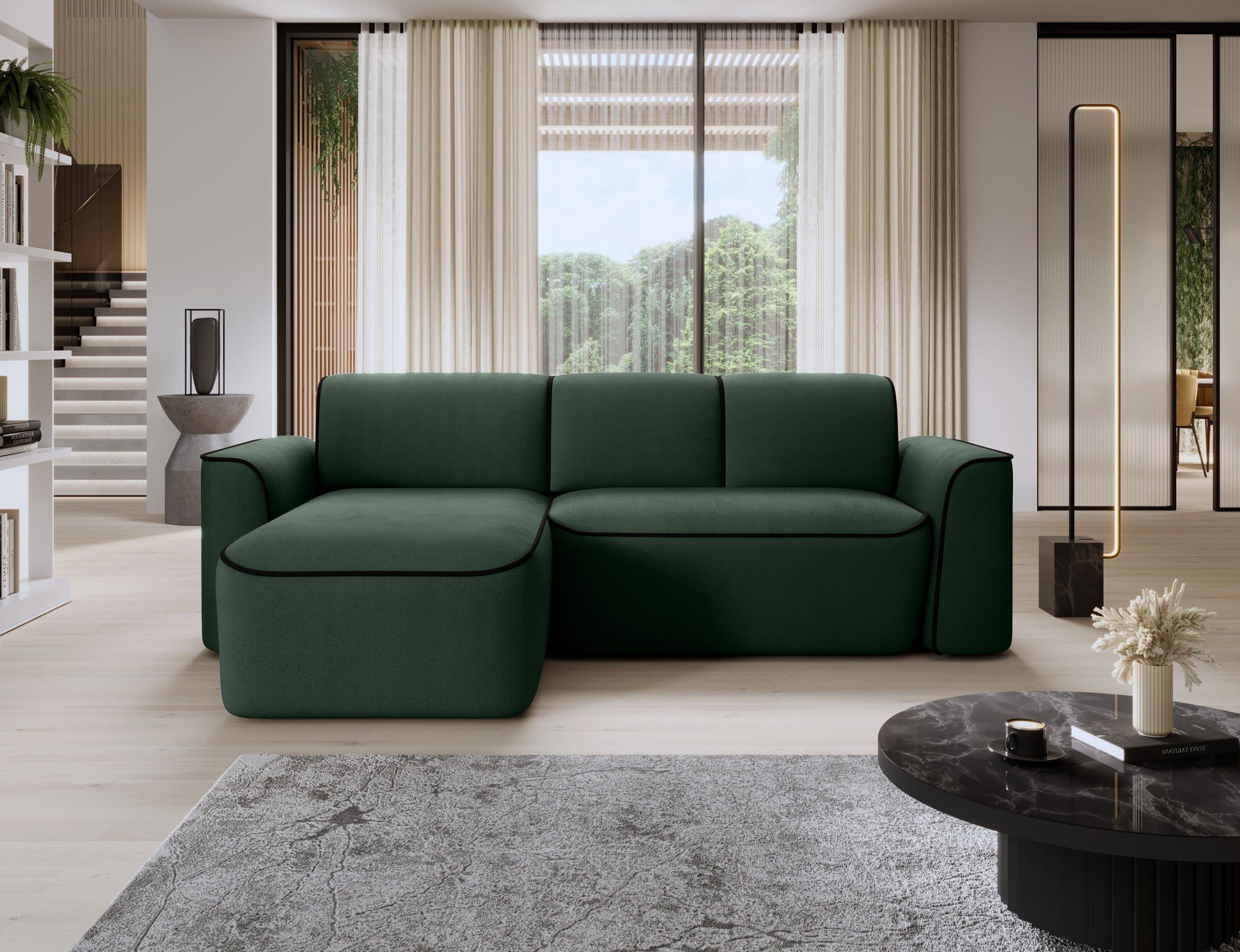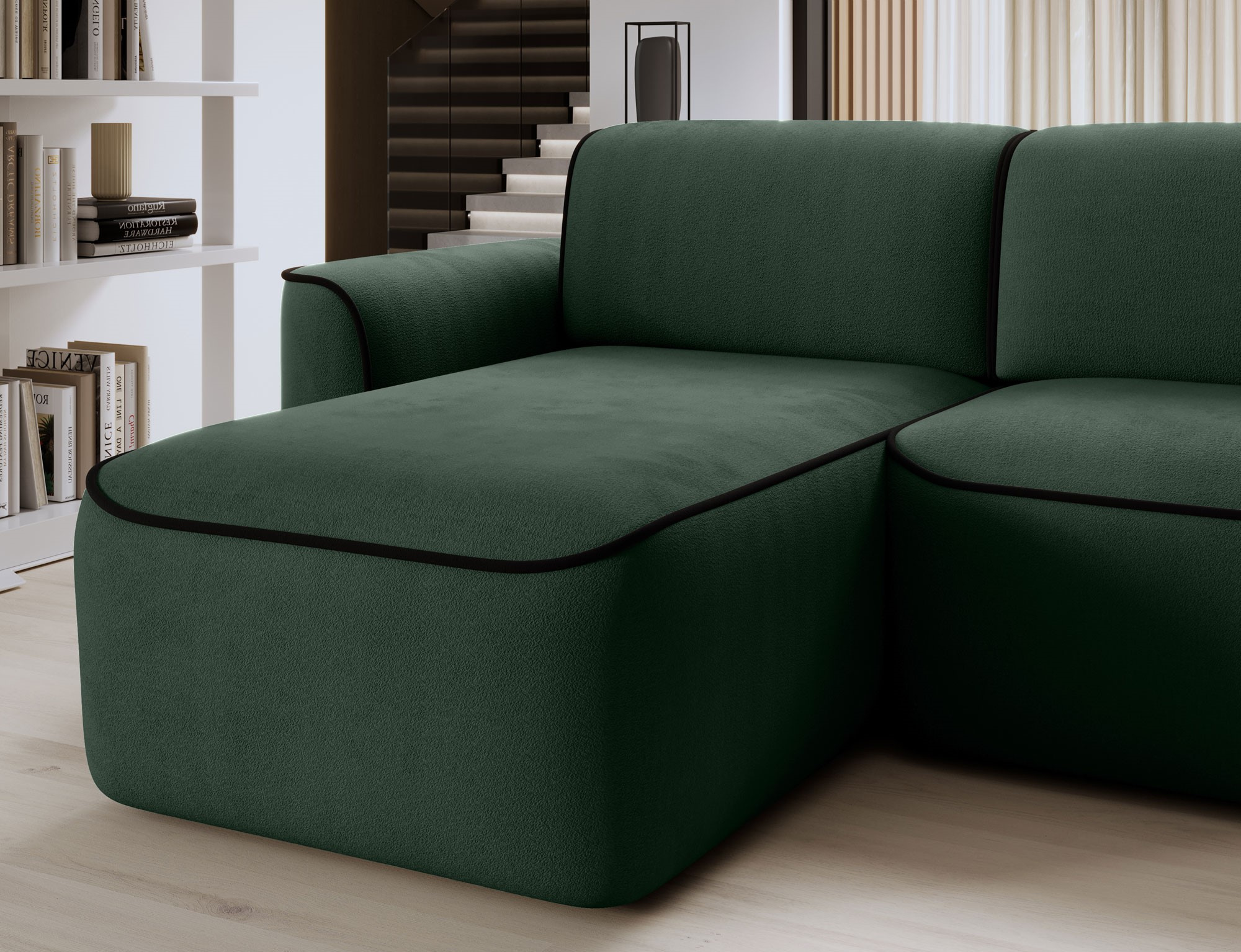 Sedací souprava Ume v provedení hlavní barva Amore 35/ obšití Velvetmat 10 má rám z borovicového dřeva. Sedák má vyrobený z odolné vysoce flexibilní HR pěny T3030. Opěradlo je vyrobeno z pěny T2540 + T2315. Je vybavena elektricky výsuvným sedákem. Nosnost pohovky 270kg. Nohy jsou plastové černé o výšce 2,5 cm. Provedení rohu levé. Zboží je částečně smontováno.
