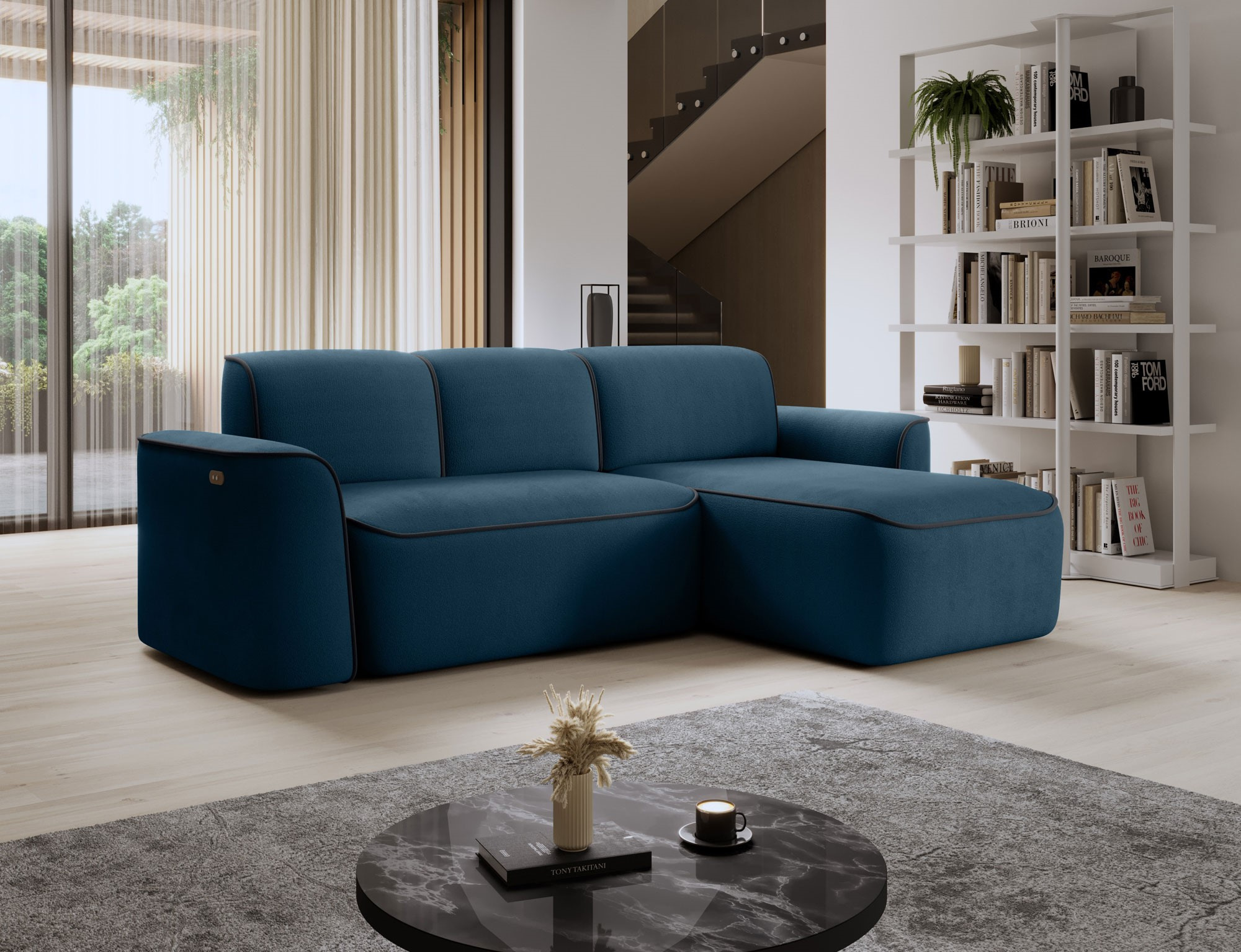 Sedací souprava Ume v provedení hlavní barva Amore 40/ obšití Velvetmat 6 má rám z borovicového dřeva. Sedák má vyrobený z odolné vysoce flexibilní HR pěny T3030. Opěradlo je vyrobeno z pěny T2540 + T2315. Je vybavena elektricky výsuvným sedákem. Nosnost pohovky 270kg. Nohy jsou plastové černé o výšce 2,5 cm. Provedení rohu pravé. Zboží je částečně smontováno.