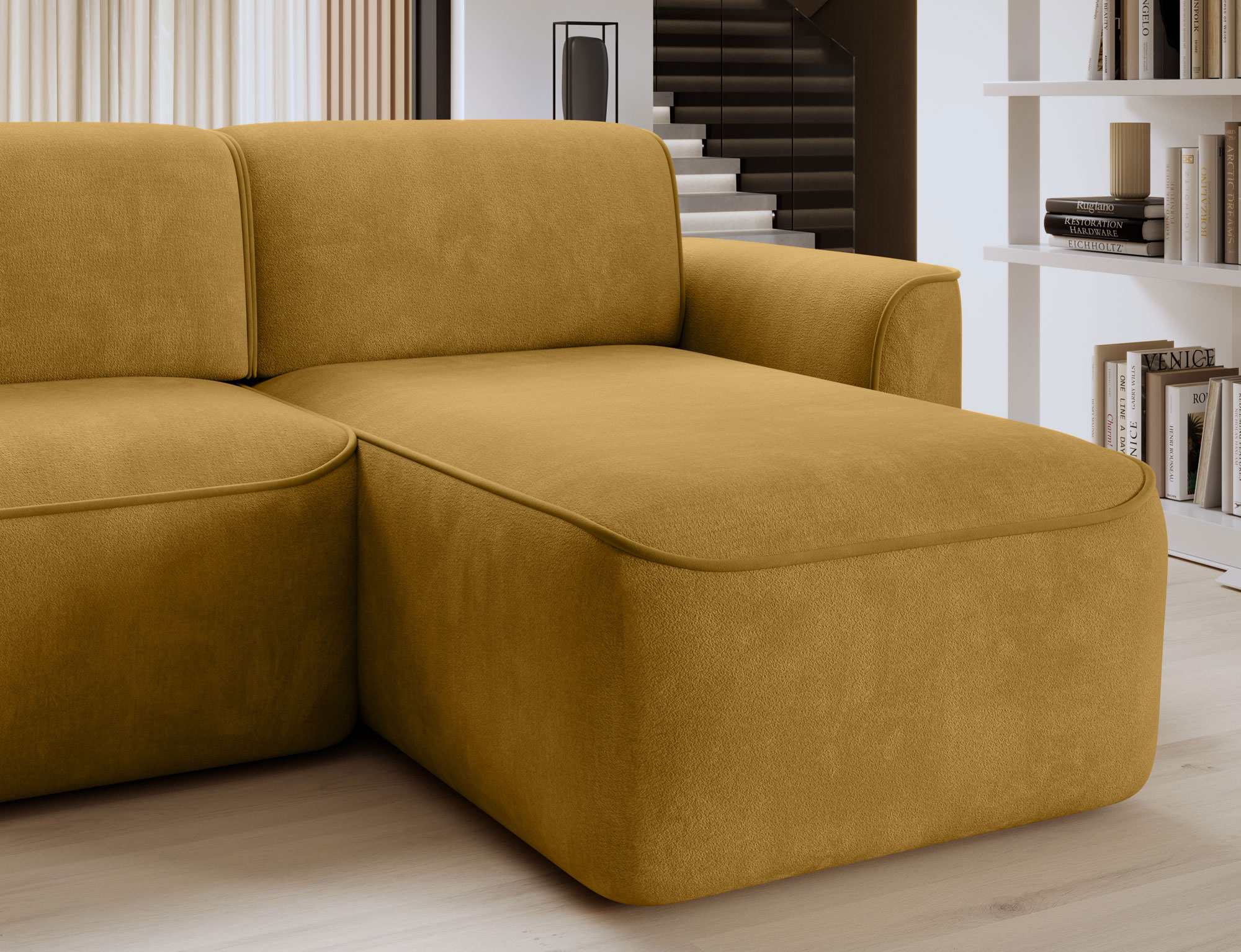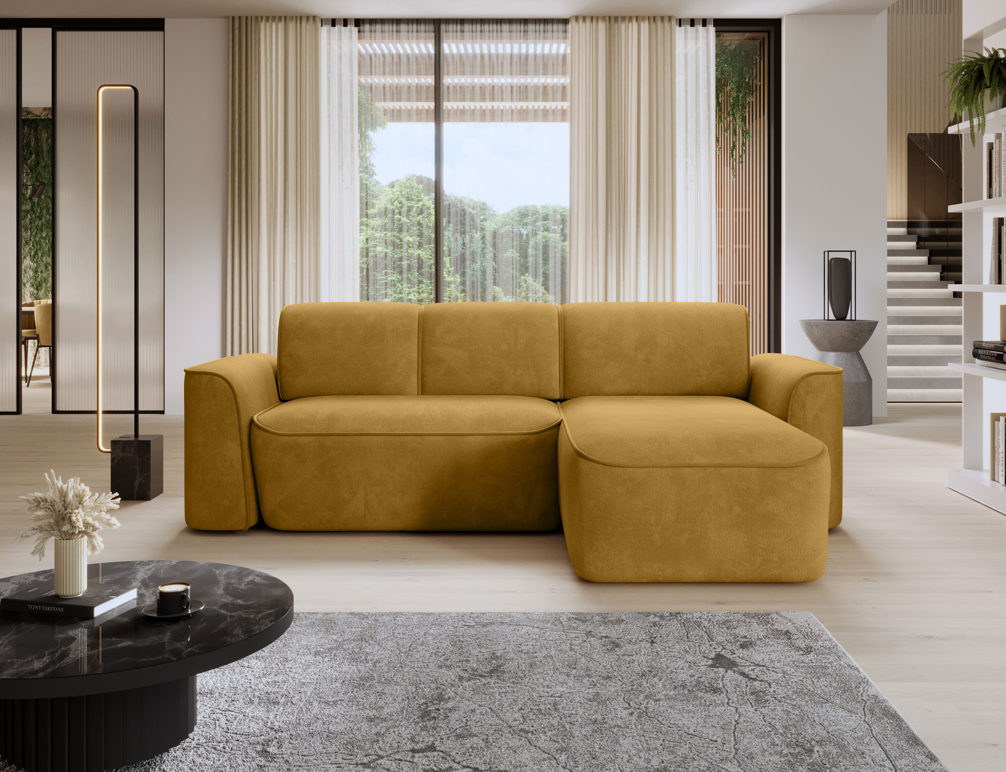 Sedací souprava Ume v provedení hlavní barva Amore 45/ obšití Riviera 41 má rám z borovicového dřeva. Sedák má vyrobený z odolné vysoce flexibilní HR pěny T3030. Opěradlo je vyrobeno z pěny T2540 + T2315. Je vybavena elektricky výsuvným sedákem. Nosnost pohovky 270kg. Nohy jsou plastové černé o výšce 2,5 cm. Provedení rohu pravé. Zboží je částečně smontováno.