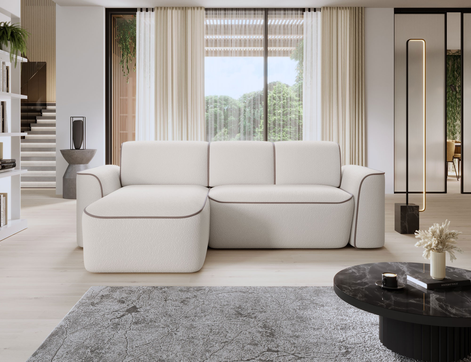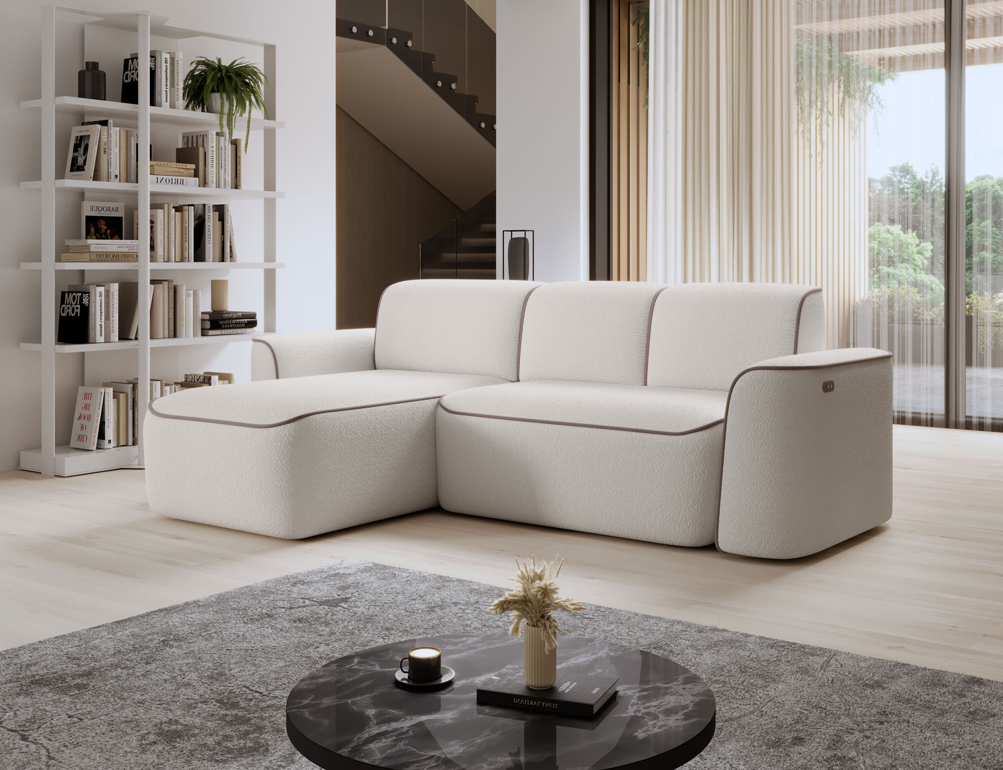 Sedací souprava Ume v provedení hlavní barva Royal 01 / obšití Paros 02 má rám z borovicového dřeva. Sedák má vyrobený z odolné vysoce flexibilní HR pěny T3030. Opěradlo je vyrobeno z pěny T2540 + T2315. Je vybavena elektricky výsuvným sedákem. Nosnost pohovky 270kg. Nohy jsou plastové černé o výšce 2,5 cm. Provedení rohu levé. Zboží je částečně smontováno.