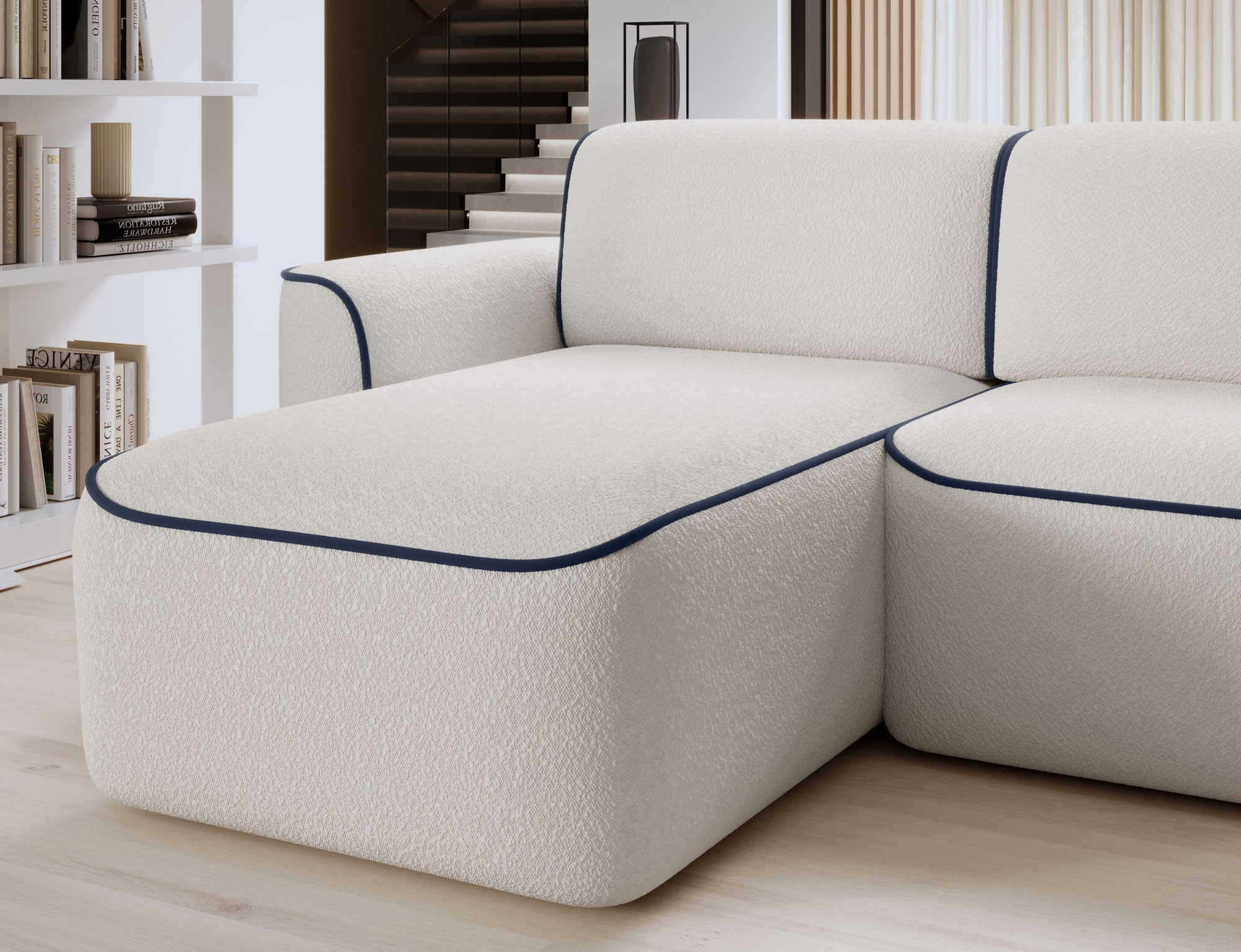 Sedací souprava Ume v provedení hlavní barva Royal 01 / obšití Velvetmat 40 má rám z borovicového dřeva. Sedák má vyrobený z odolné vysoce flexibilní HR pěny T3030. Opěradlo je vyrobeno z pěny T2540 + T2315. Je vybavena elektricky výsuvným sedákem. Nosnost pohovky 270kg. Nohy jsou plastové černé o výšce 2,5 cm. Provedení rohu levé. Zboží je částečně smontováno.