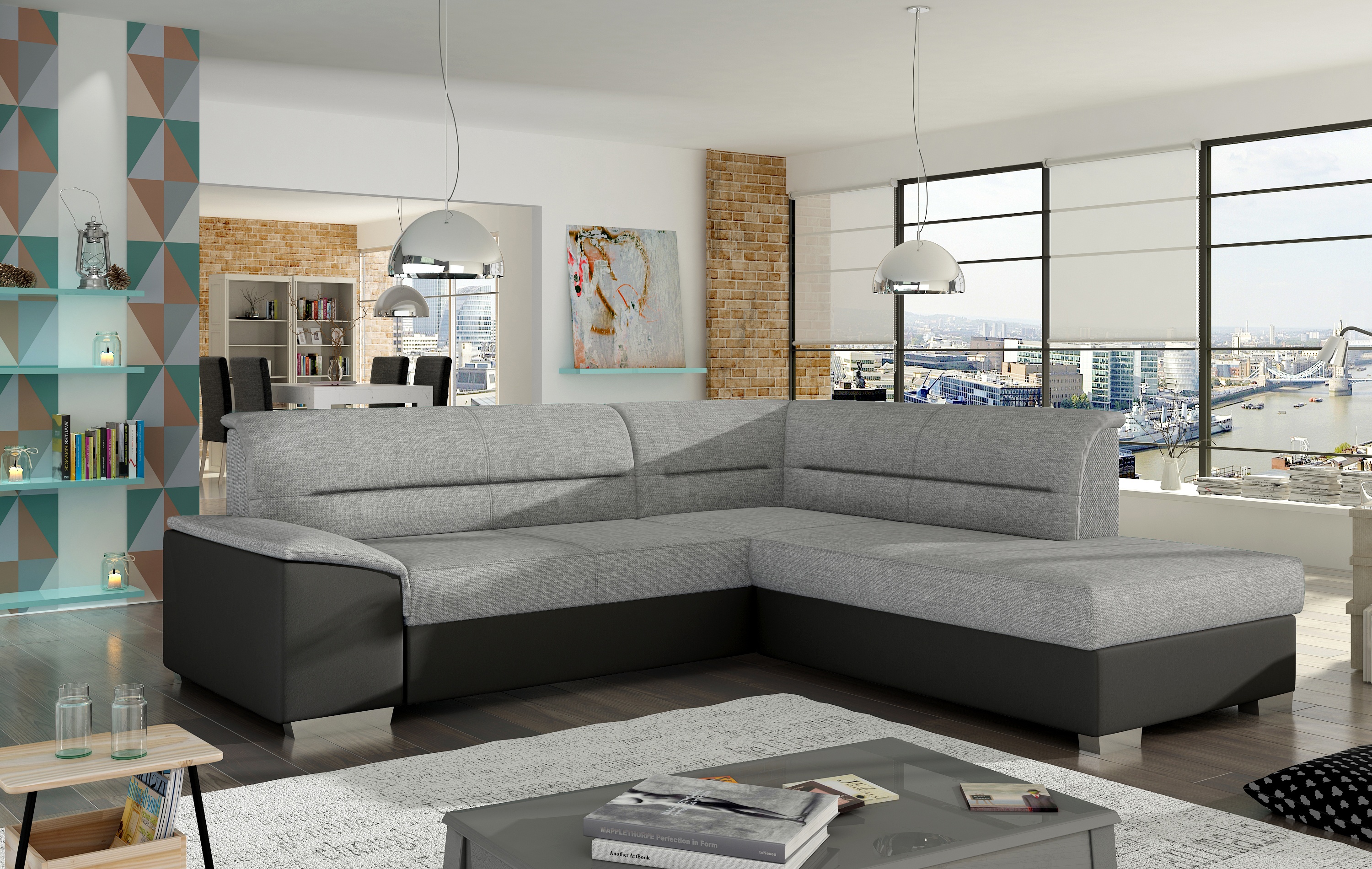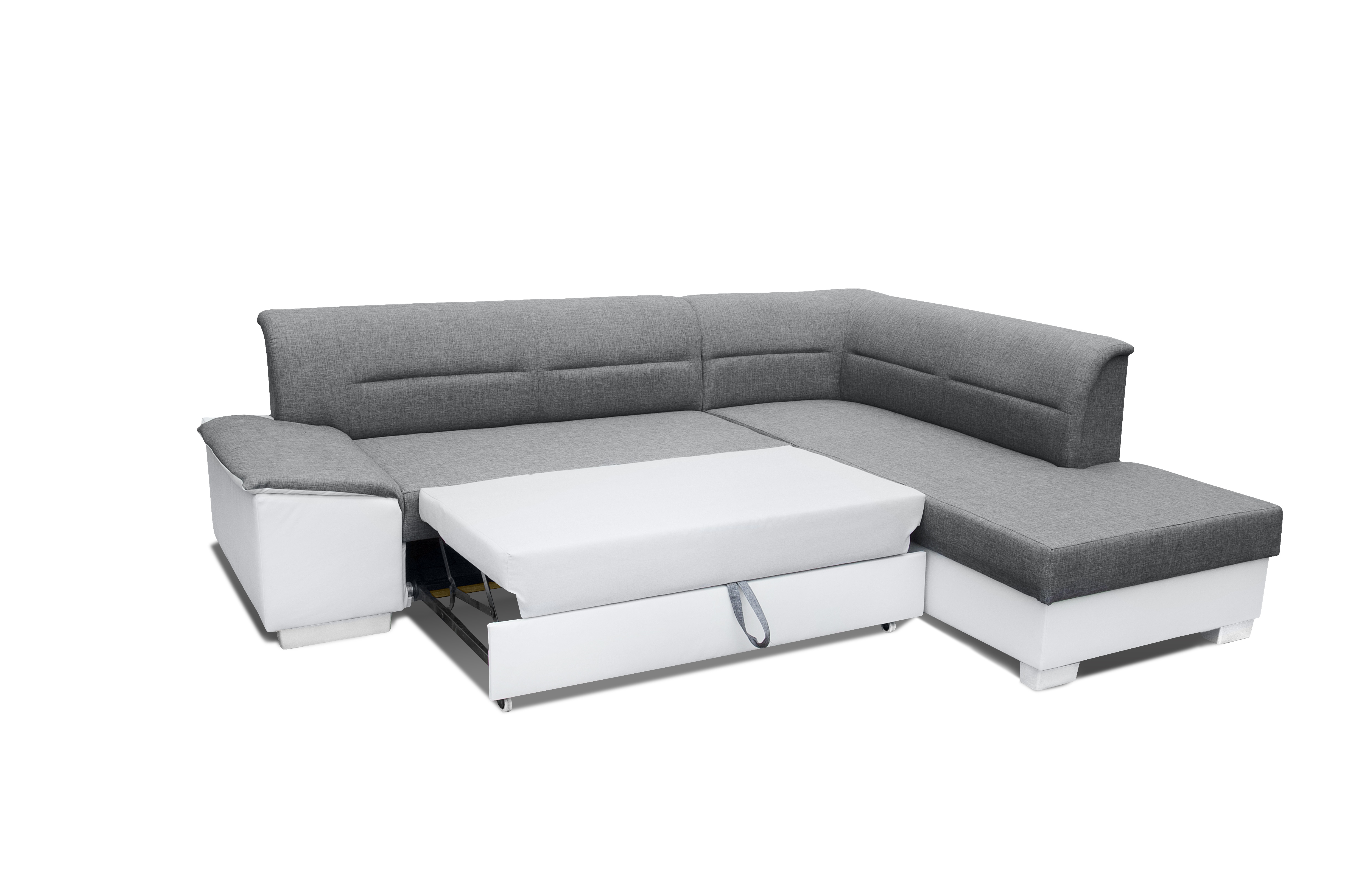 Elegantní rohová sedací souprava s funkcí rozkladu a úložným prostorem je vhodná na občasné přespání. Sedáky jsou plněny vlnitou pružinou a kvalitní PUR pěnou. Tato sedací souprava je vhodná do prostoru. Sedací soupravu lze vyrobit v pravém či levém provedení. Nožky jsou v barvě lesklý chrom. Potahová látka jako na hlavní fotografii, provedení pravé.
