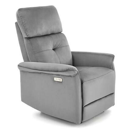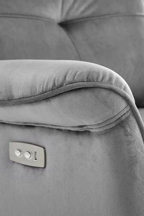Křeslo SEMIR je čalouněno příjemnou sametovou látkou v barevné variantě šedá. Stojí na nenápadných nízkých nožičkách z polypropylenu. Funkce polohování je elektrická. Křeslo lze nastavit do několika různých poloh. Křeslo je praktické díky své integrované USB zásuvce. Maximální nosnost 120 kg.