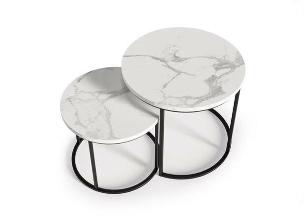 Moderní konferenční stolek Oreo se skládá ze dvou částí a hodí se do každého obývacího prostoru. Je vyroben z materiálu MDF laminovaná/prášková ocel v barvě bílý mramor - černá. Zboží dodáváme v demontu.
