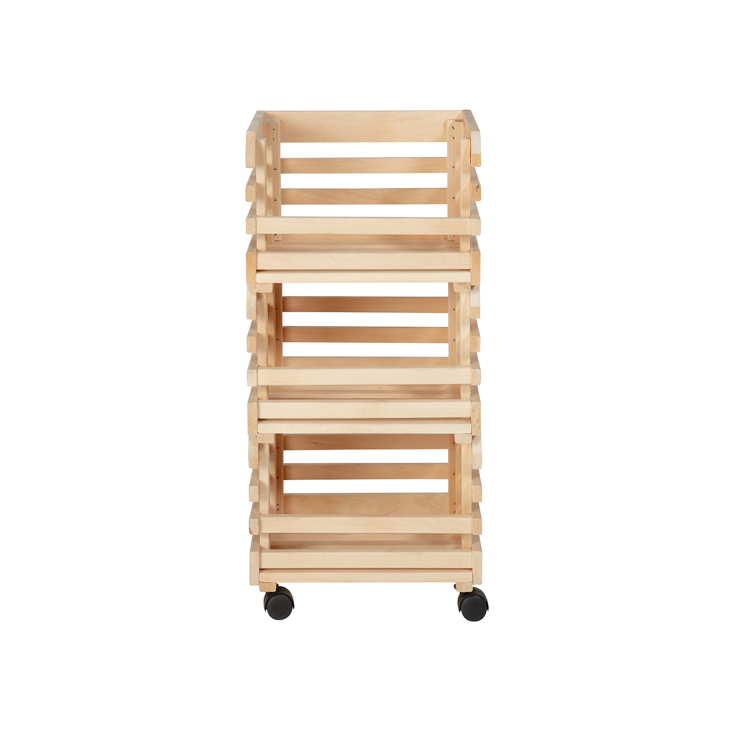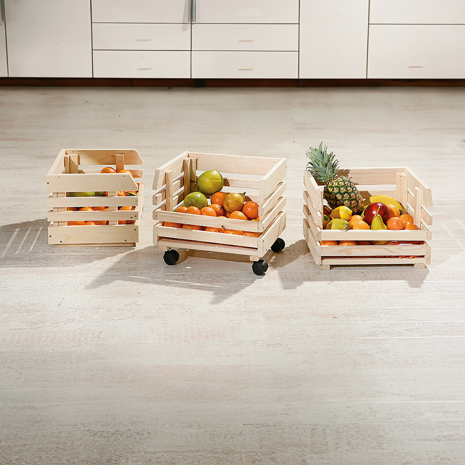 materiál masiv, nelakované provedení 3 stohovatelné bedýnky na ovoce nebo zeleninu spodní pojízdná na kolečkách