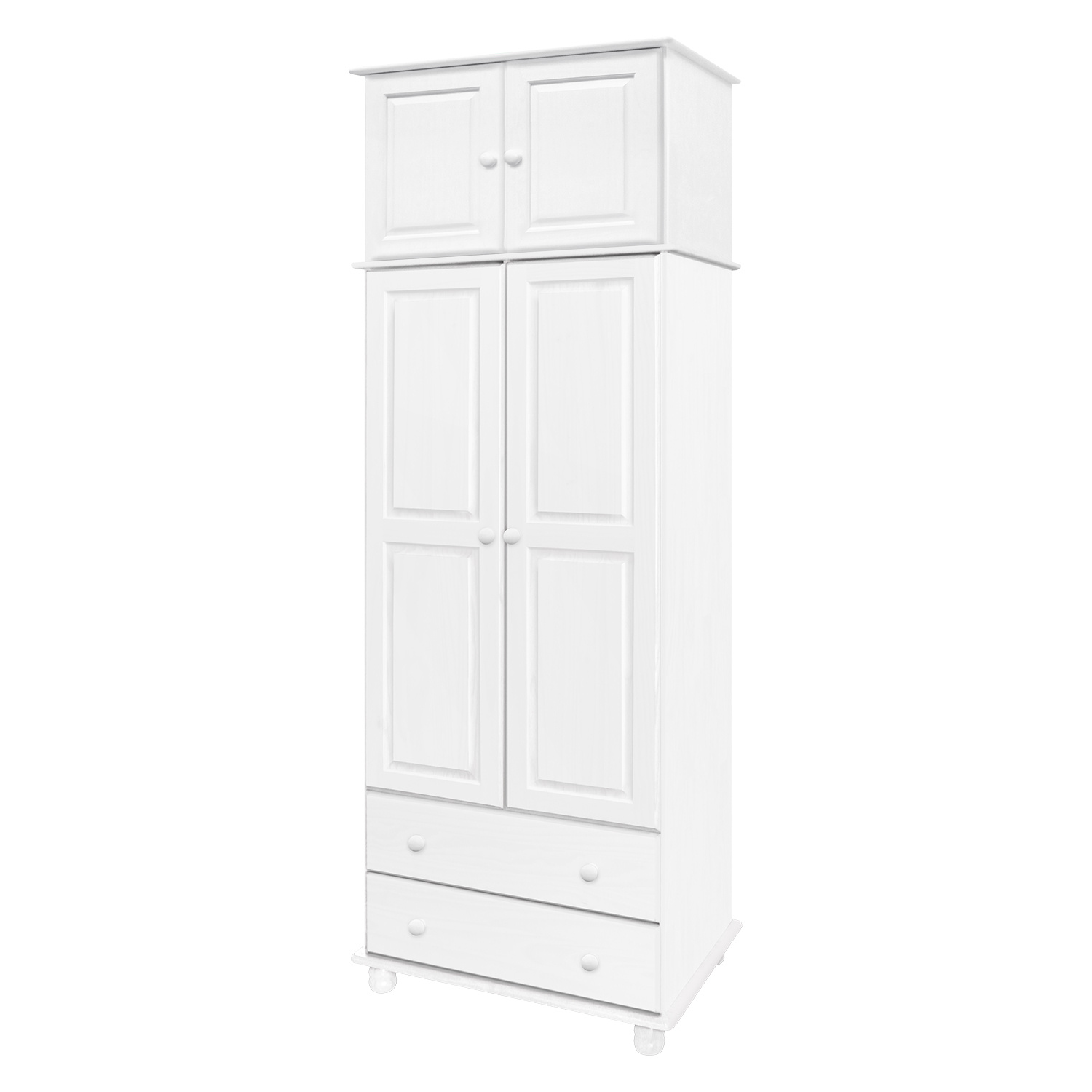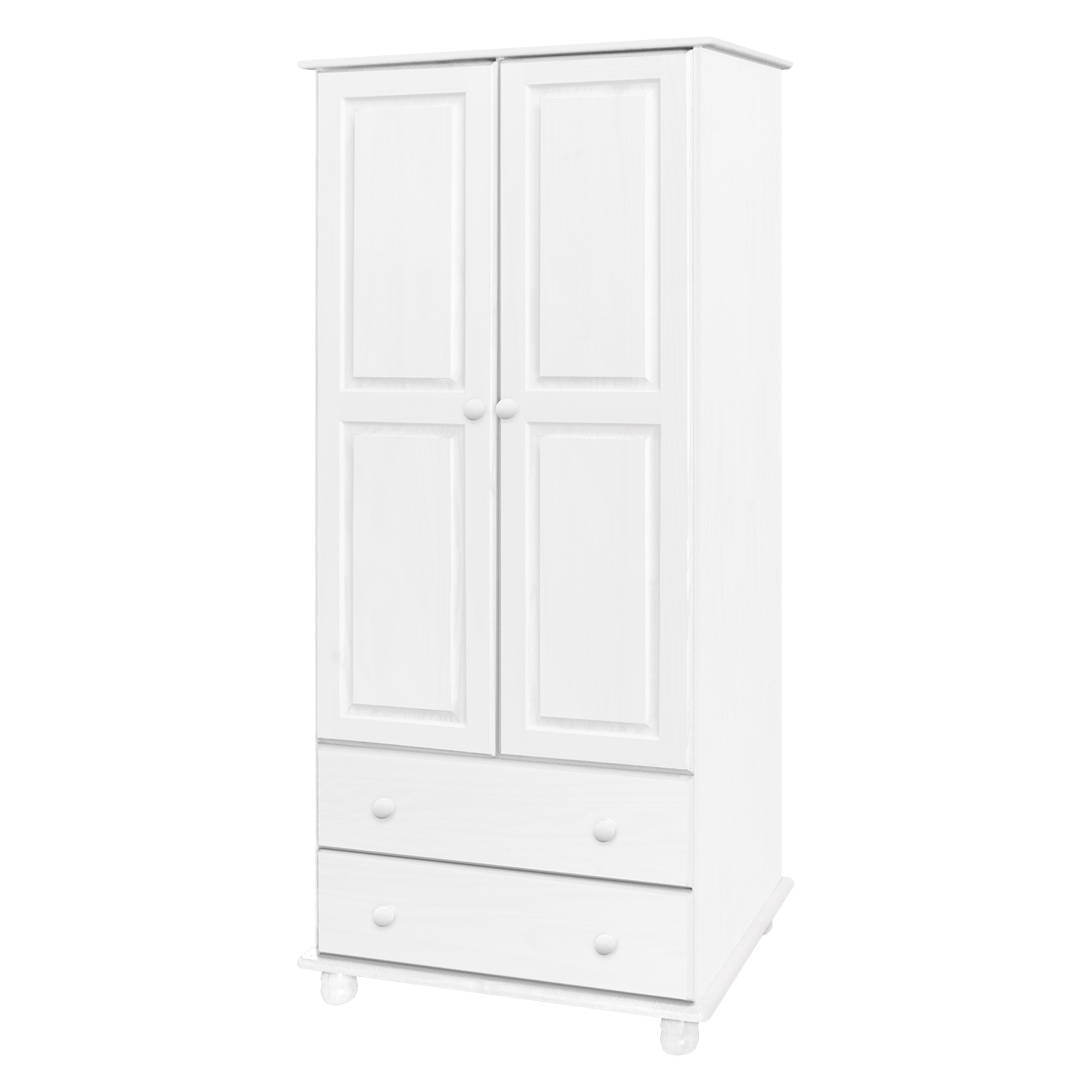 materiál masiv borovice, barevné provedení bílý lak dvě široké zásuvky s kovovými pojezdy v horní části šatní tyč a 3 police doporučený nástavec 8861B