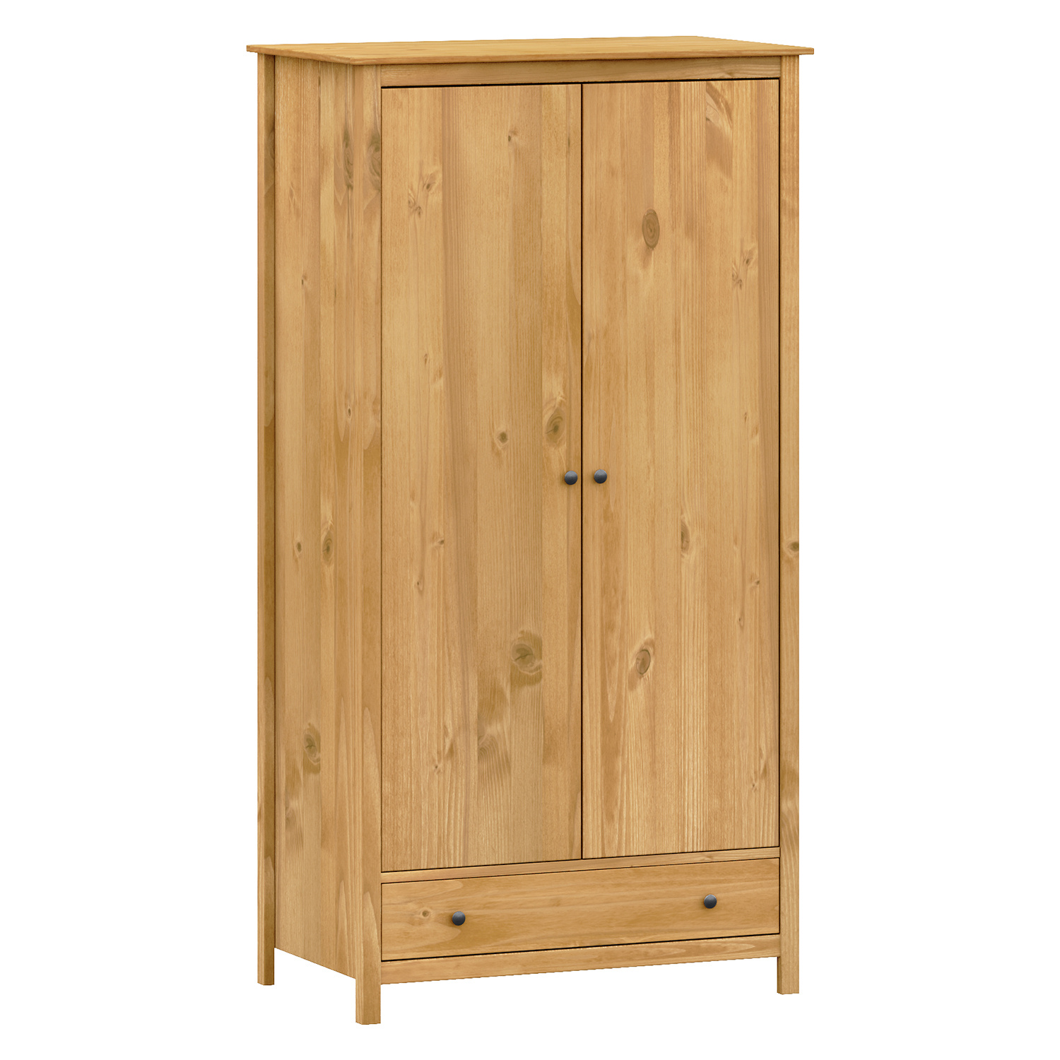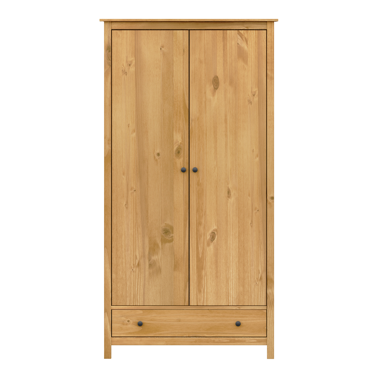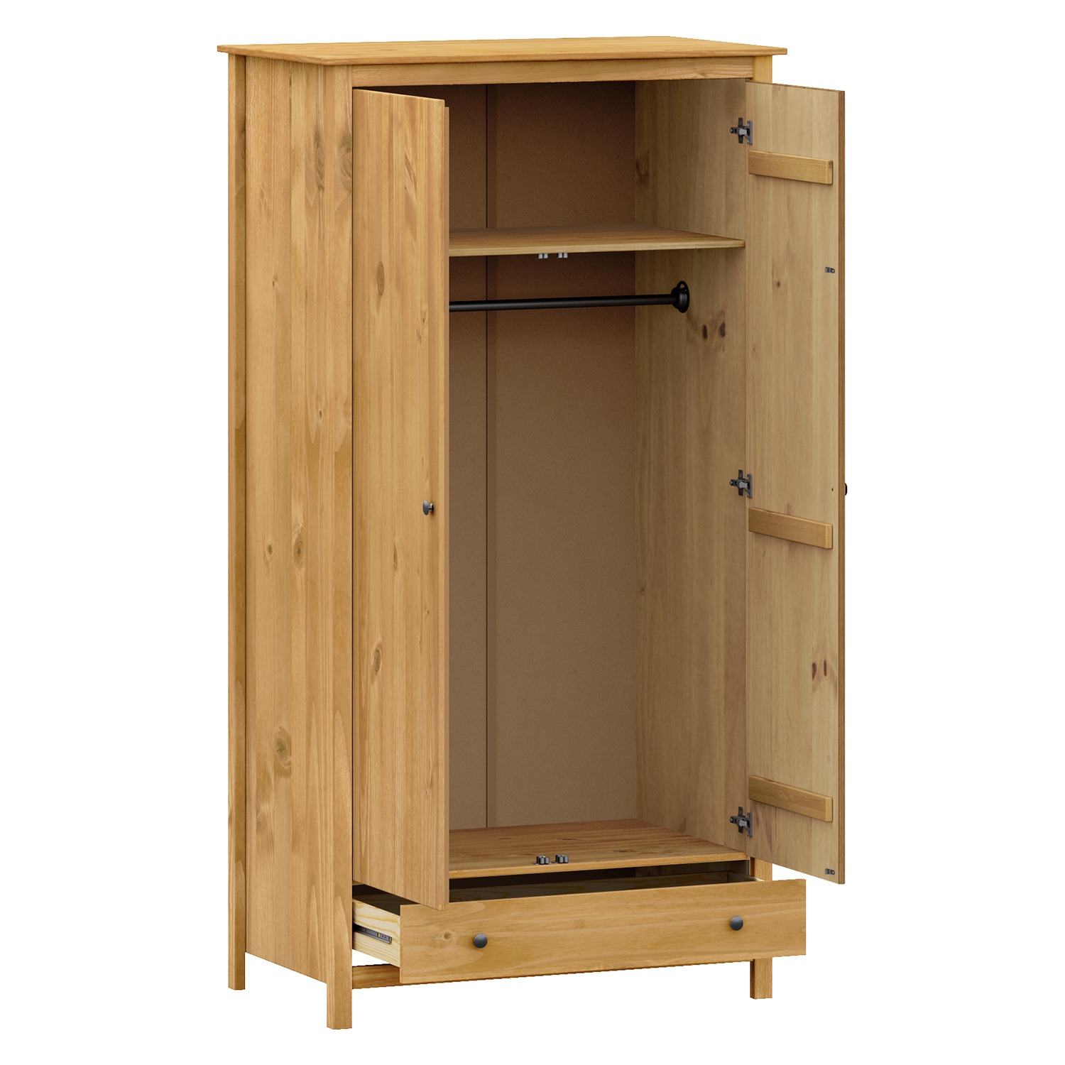 materiál masiv borovice voskovaná v medovém odstínu kovové úchytky v barevném provedení černěná mosaz šatní skříň vybavená šatní tyčí a policí ve spodní části zásuvka s kovovými pojezdy doporučený nástavec 8188V