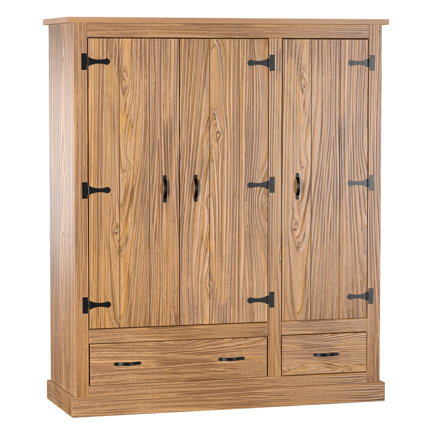 materiál masiv borovice, barevné provedení dub antik lakováno čirým lakem, vlis dřevěné struktury v levé části šatní tyč a police na klobouky v pravé části dvě police, v dolní části dvě zásuvky součást sestavy EL DORADO