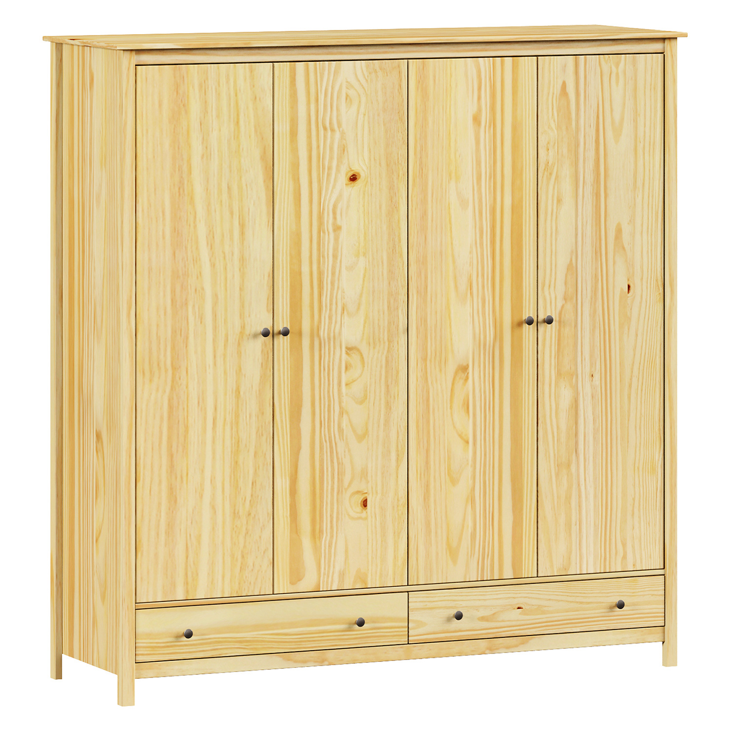 materiál masiv borovice, lakované provedení kovové úchytky prostor dělený na poloviny v levé polovině šatní tyč a police na klobouky v pravé polovině 3 police ve spodní části 2 zásuvky s kovovými pojezdy doporučený nástavec 8168K