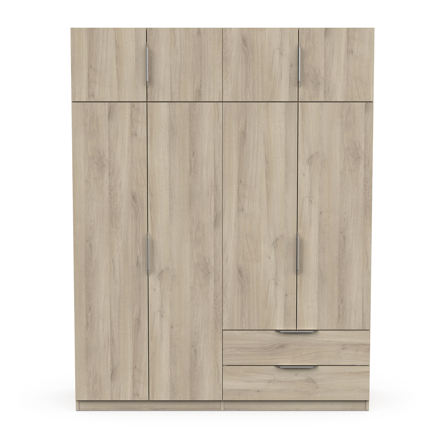 barevné provedení dub Kronberg prostor dělený na poloviny, v levé části šatní tyč v pravé části 2 police a 2 zásuvky s kovovými pojezdy v horní části dva úložné prostory maximální nosnosti uvedeny v návodu k montáži