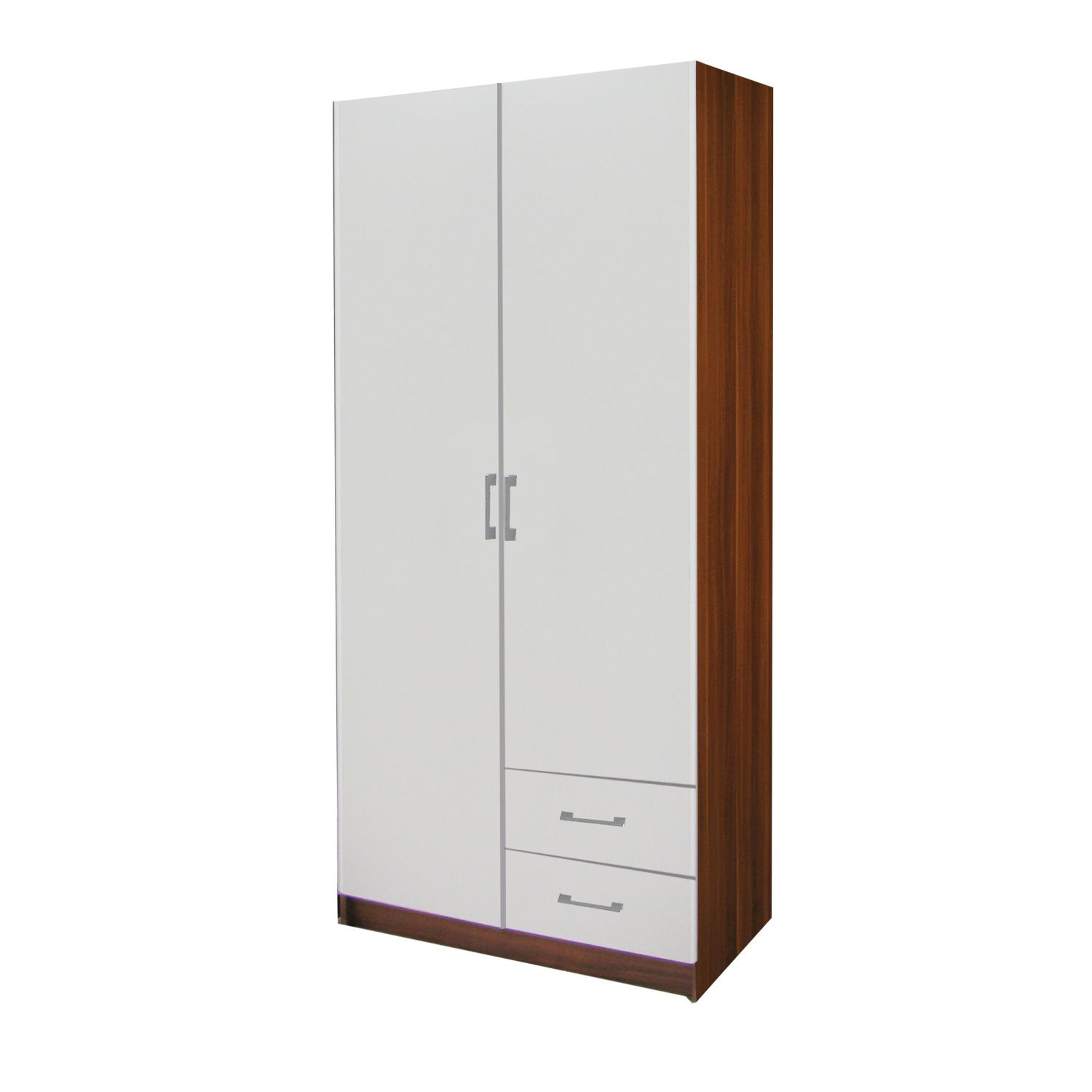 Skříň ESO 61521 v barevném provedení ořech/bílá vám poskytne dostatečný prostor na přehledné uspořádání vašeho šatníku. Skříň je vybavena pevnou šatní tyčí a policí, takže veškeré oblečení pěkně zavěsíte na ramínka či poskládáte na dno skříně, doplňky pak umístíte do police, k uložení prádla poslouží dvě malé zásuvky. Skříň ESO dvoudveřovou lze v případě potřeby doplnit i o praktický nástavec 61525 a využít tak další úložný prostor. Zboží je dodáváno v demontu.