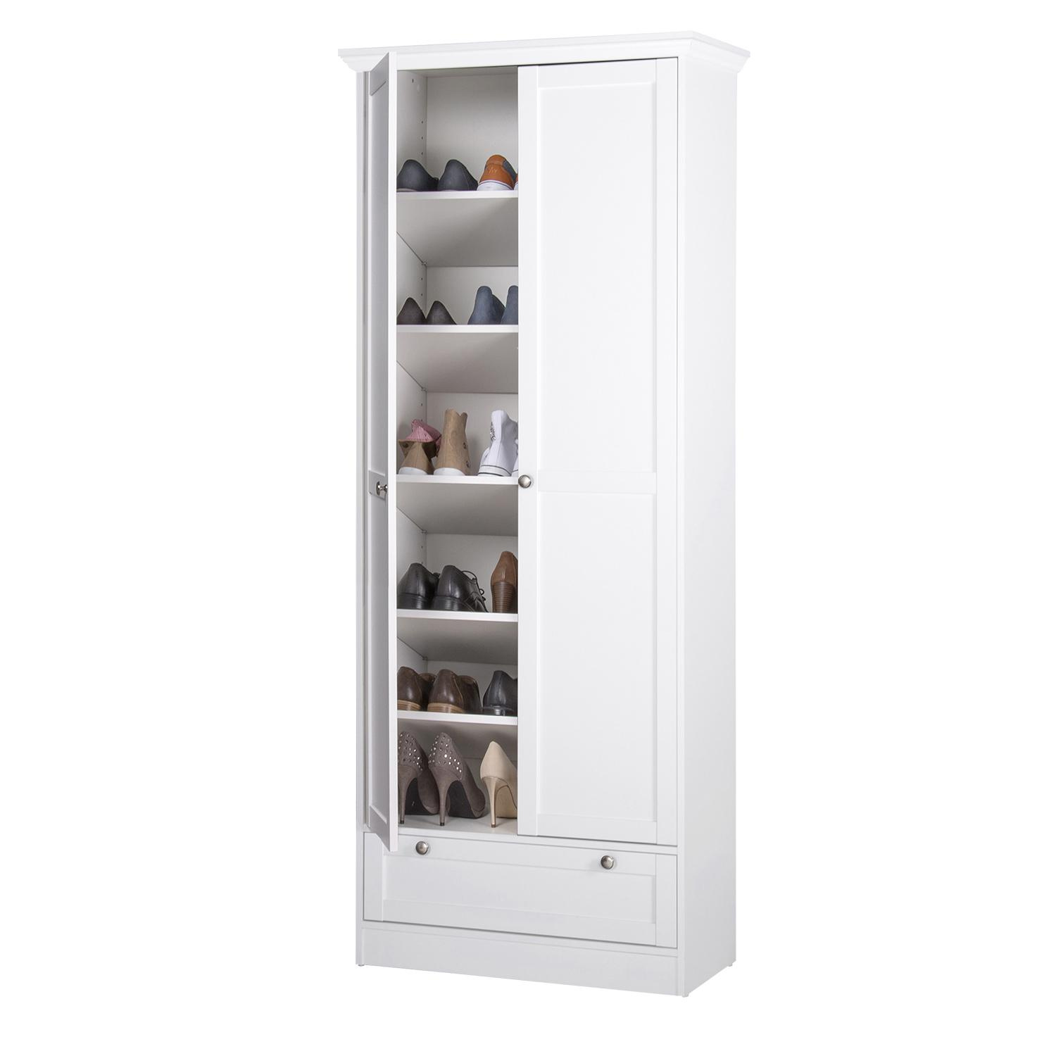Víceučelová skříň dvoudveřová + 1 zásuvka LANDWOOD 13 potěší všechny romantické duše. Skříň je vyrobena v kombinaci MDF / lamino v barevném provedení bílá. Má variabilní police, které můžete umistit rovně i šikmo ( jako botník). Součast skříně jsou 2 dveře, 1 zásuvka, 5 polic, úchytky starožitného vzhledu, součást sestavy Landwood. Zboží dodáváme v demontu.