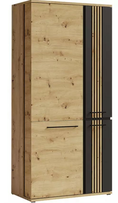 Moderní skříň Molto je vyrobena z kvalitního a odolného lamina, v kombinaci dezénu dub artisan/černá mat. Tato skříň má mnoho úložného prostoru. Úchytky v černé barvě. Zboží dodáváme v demontu.