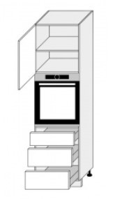 Tato skříň je určena pro vestavnou troubu. Korpus skříňky je vyroben z lamina nejvyšší kvality o tloušťce 18 mm v dezénu dle výběru. Možnost výběru provedení dvířek z dub artisan nebo dub artisan/ černá. Panty blum clip. Zadní část skříňky je vyrobena z materiálu sololit v bílé barvě. Nosnost polic je max 15-25kg. Dolní skříňky jsou dodávány bez pracovní desky. Dolní skříňka je součástí kuchyně Fiuggi, která se dá sestavit dle vašeho přání. Zboží dodáváme v demontu.