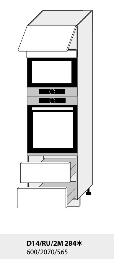 Tato skříň je určena pro vestavnou troubu a mikrovlnku. Korpus skříňky je vyroben z lamina nejvyšší kvality o tloušťce 18 mm v dezénu dle výběru. Možnost výběru provedení dvířek z dub artisan nebo dub artisan/ černá. Panty blum clip. Zadní část skříňky je vyrobena z materiálu sololit v bílé barvě. Nosnost polic je max 15-25kg. Dolní skříňky jsou dodávány bez pracovní desky. Dolní skříňka je součástí kuchyně Fiuggi, která se dá sestavit dle vašeho přání. Zboží dodáváme v demontu.