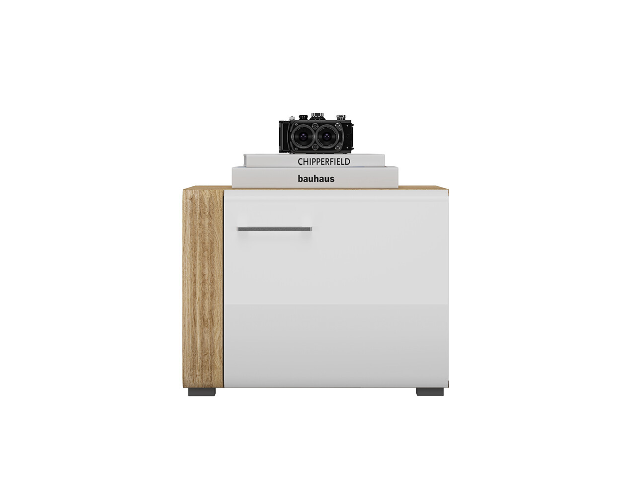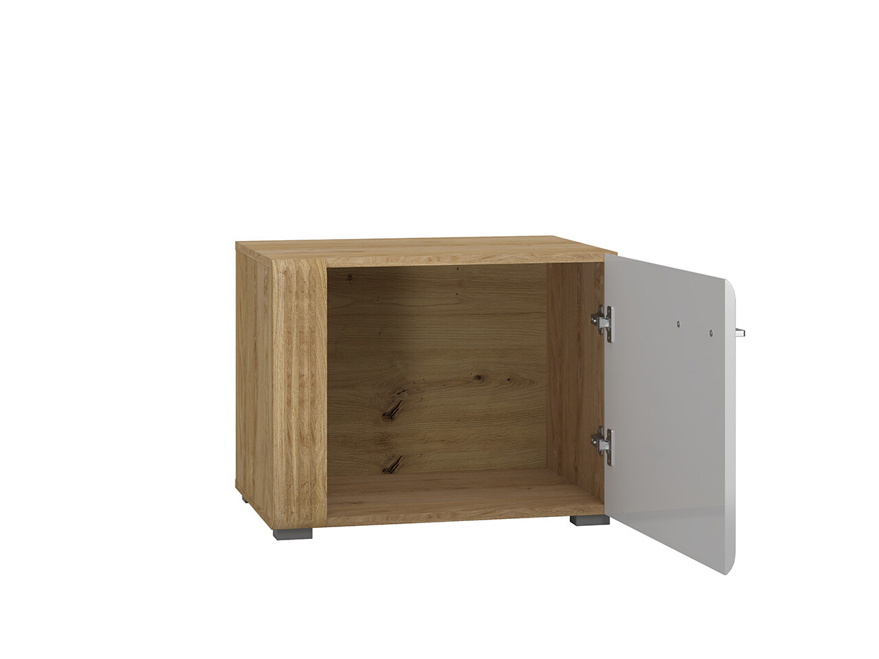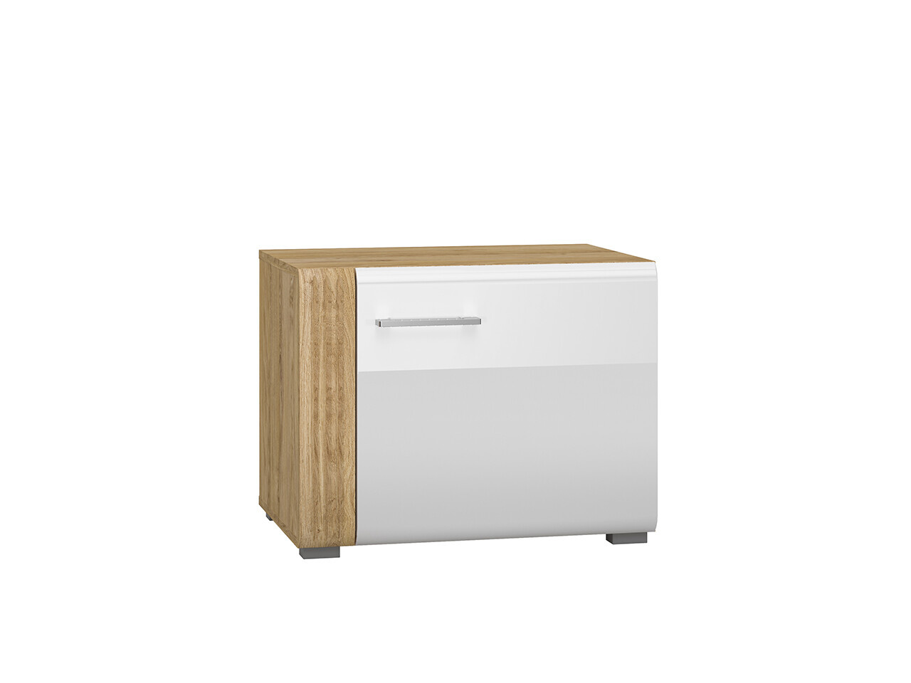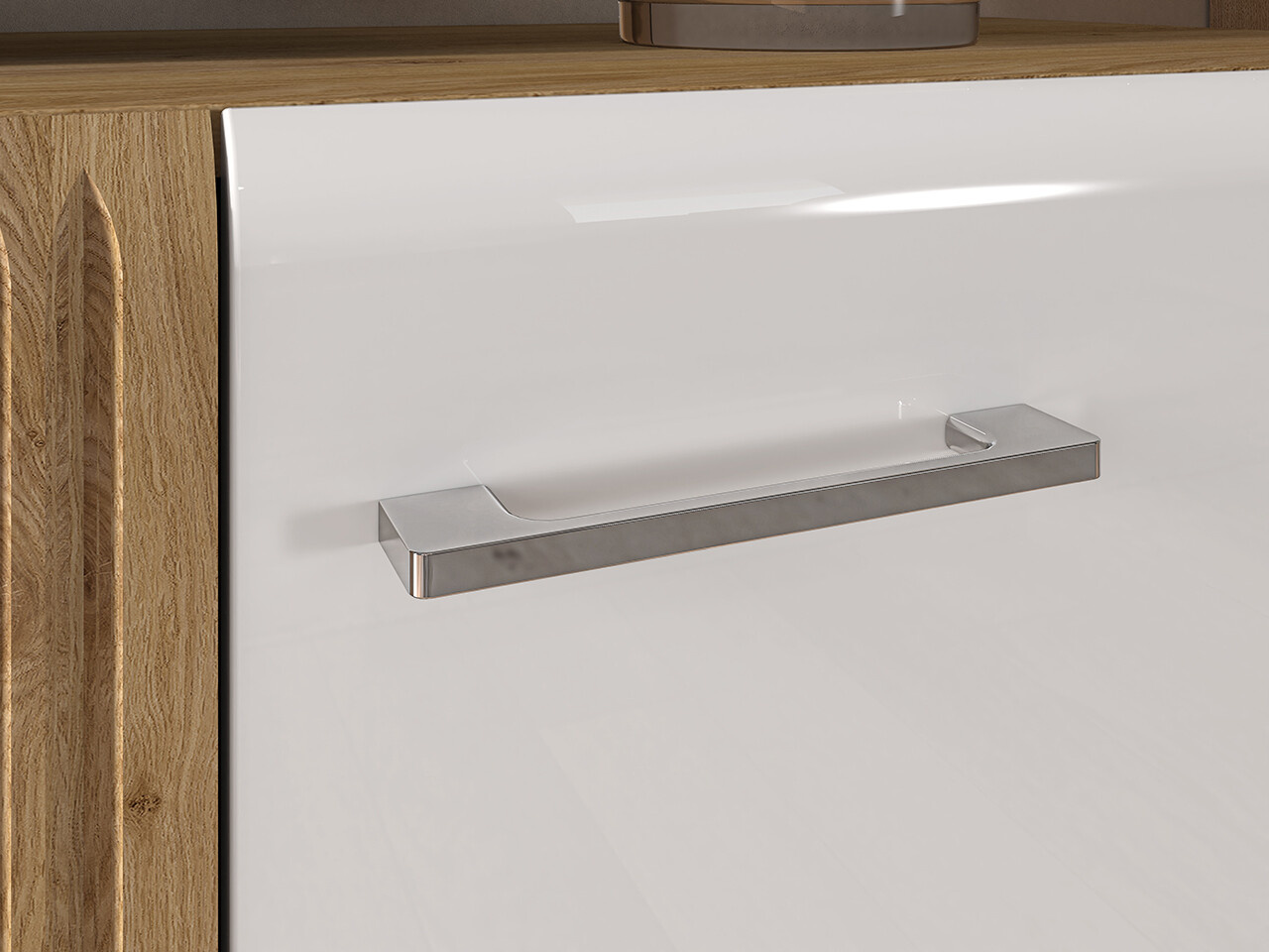 Skříňka Adagio  je vyrobena z vysoce kvalitní laminované dřevotřískové desky s ABS hranou v provedení dub castello/ bílý lesk. Drážkované vsadky ve stejném teplém odstínu jako korpusy dodávají zajímavý vzhled a čela, zaoblená nahoru, rozbíjejí jednoduchou linii kolekce a vetkávají trochu moderní klasiky. Vše doplňují kovové úchytky. Zboží dodáváme v demontu.