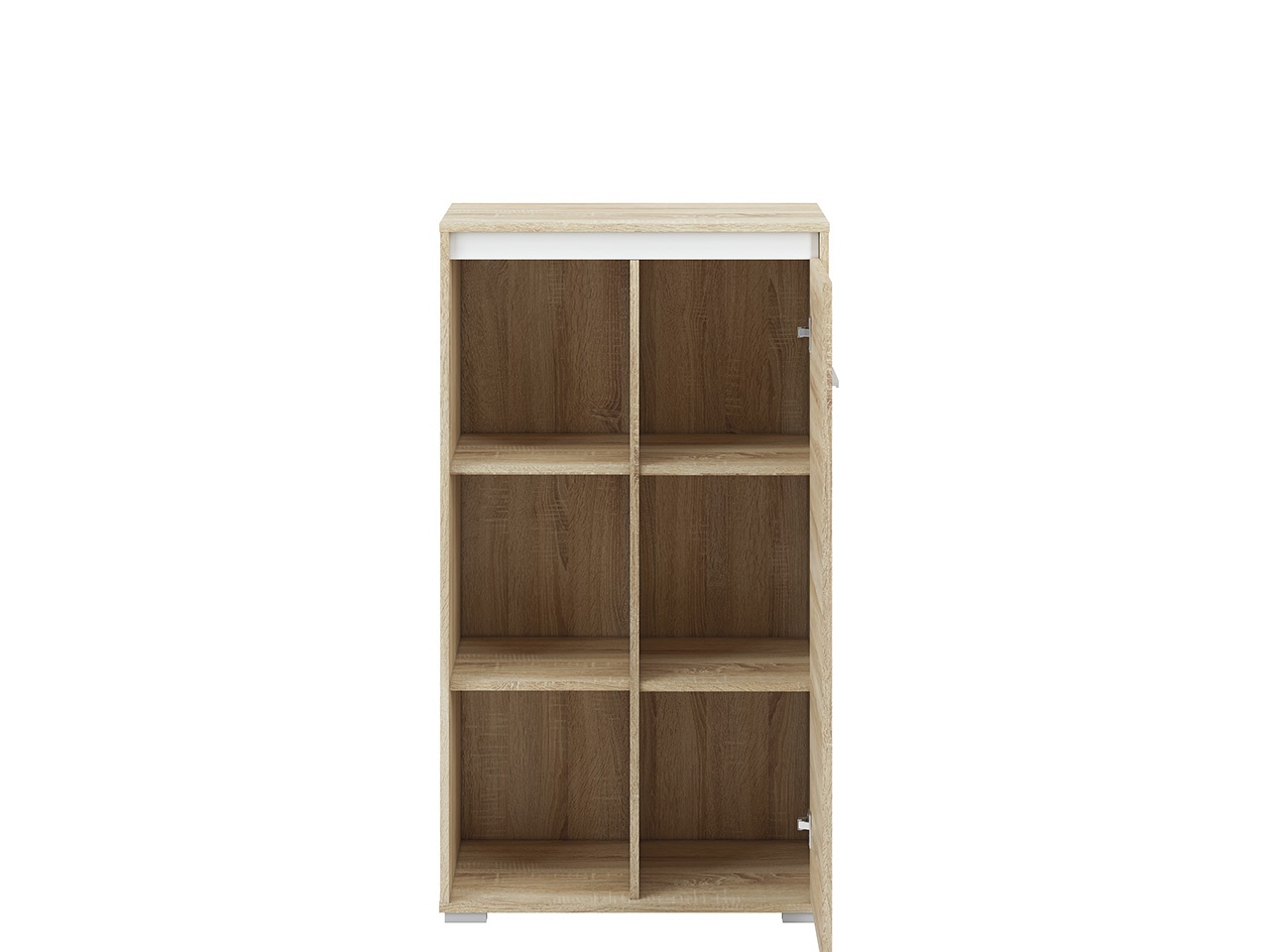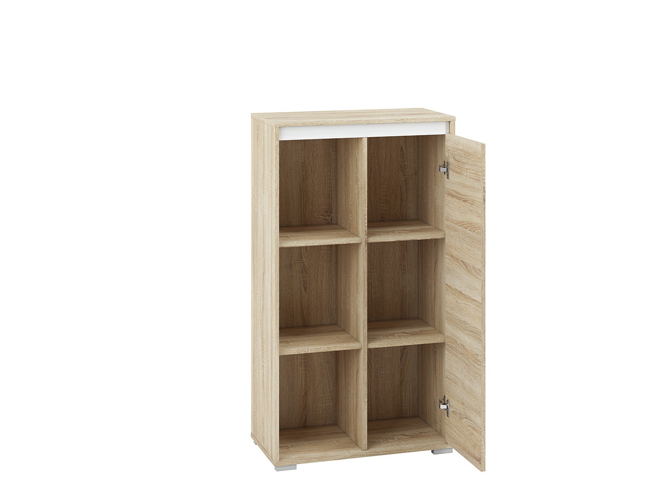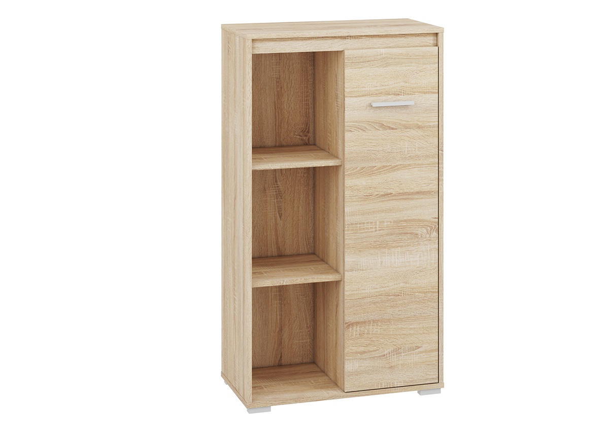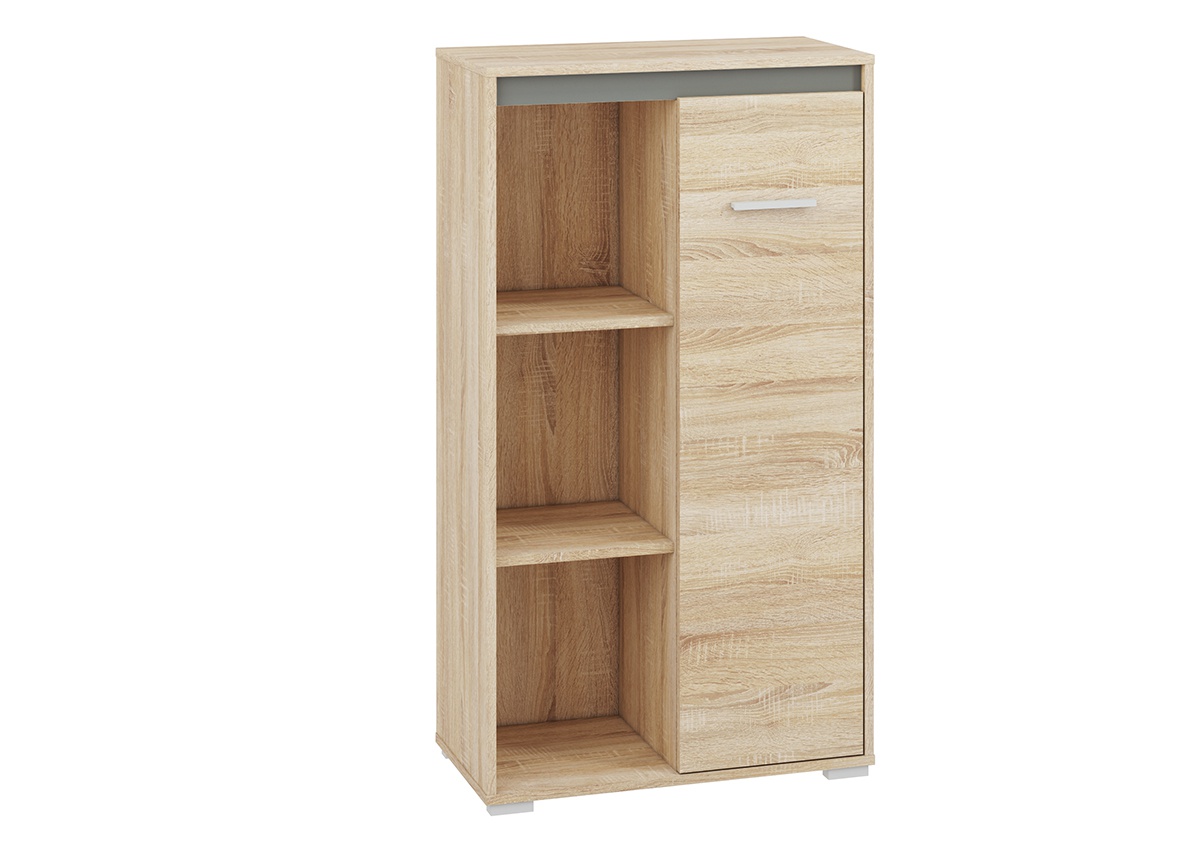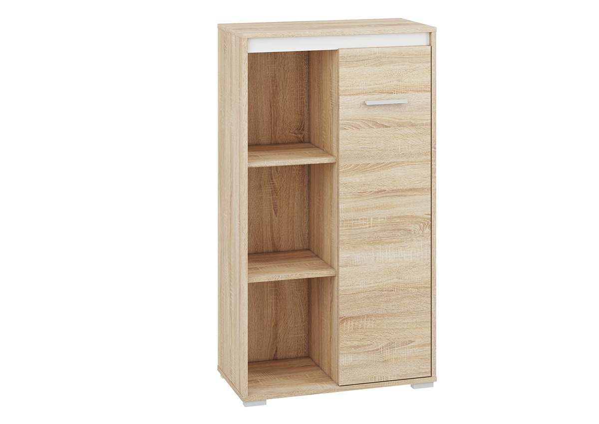 Nábytkový systém je moderní a minimalistický. Nábytek je vyroben z kvalitního lamina, které je odolné proti poškrábání, vlhkosti a vysokým teplotám. Korpus i dvířka jsou v dezénu dub sonoma. Hrana ABS představuje stálost, odolnost proti nárazu, estetickou úpravu. Odolná proti vlhkosti, nedeformuje se a neuvolní od povrchu. Skříňka má dvě police a dvířka. Zboží je dodáváno v demontu.