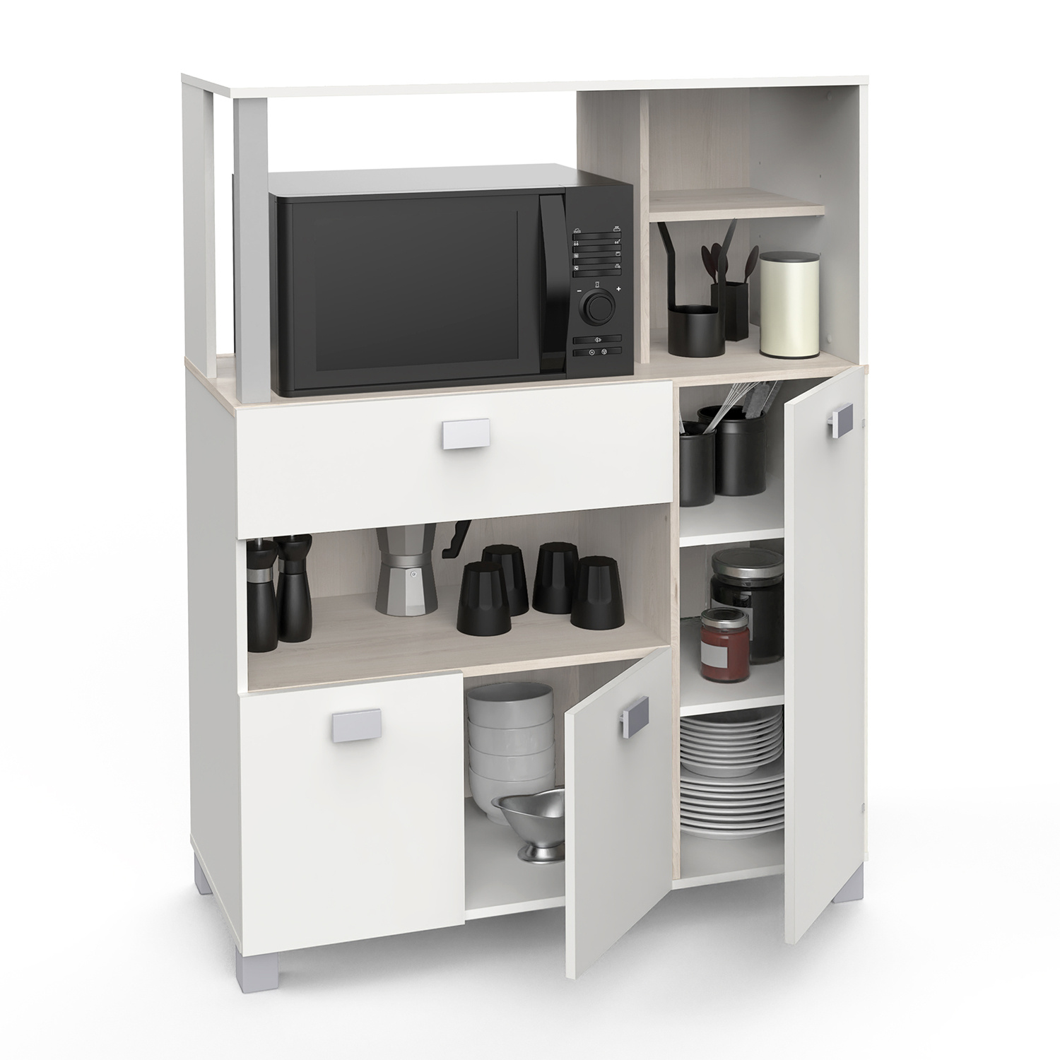 Skříňka na mikrovlnnou troubu BASILIC akácie/bílá
