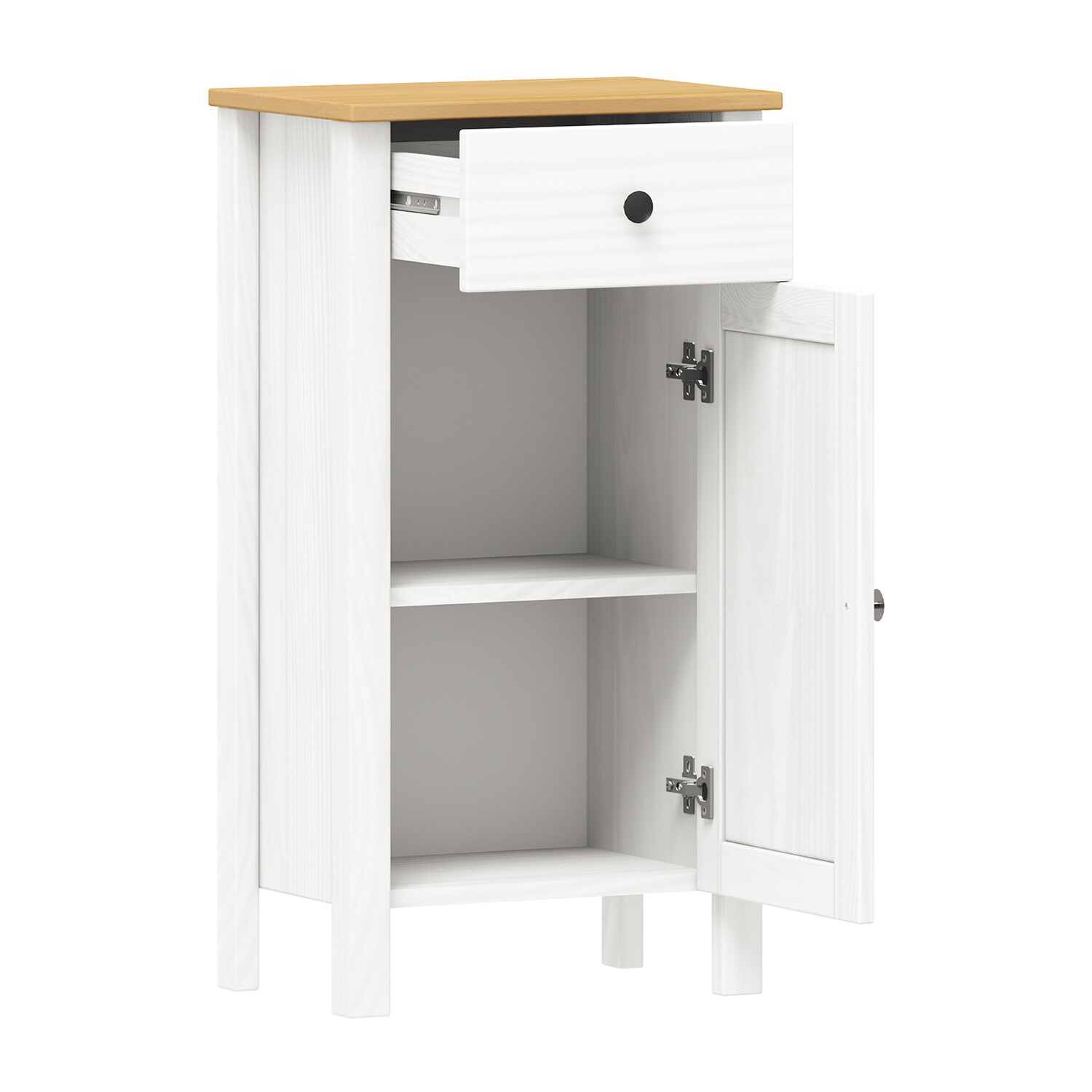 Skříňka PORTO je vyrobena z masivu borovice v provedení bílá/ buk lak. Zásuvka s kovovými pojezdy.Skříňka je součástí sestavy PORTO bílá/ buk. Zboží dodáváme v demontu.