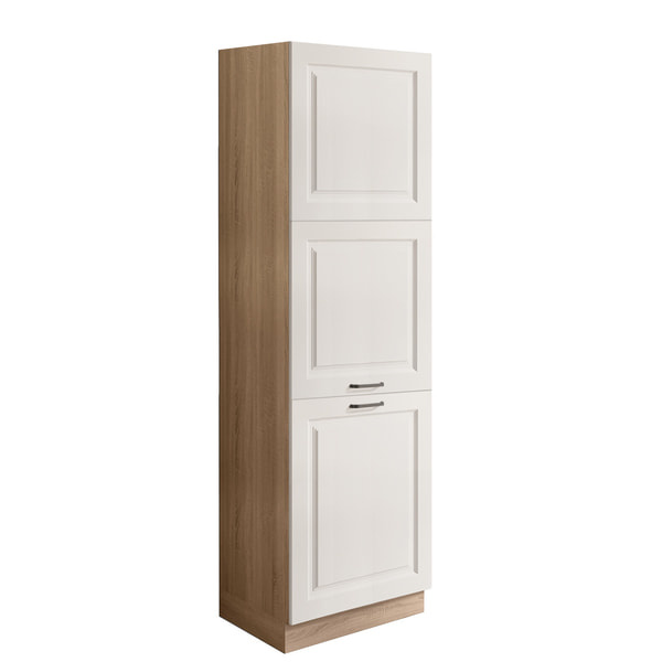 Skříňka na vestavbu lednice dvoudvéřová je vyrobena z laminované dřevotřísky v barevném provedení korpus dub sonoma , dvířka bílá lesk. Díky polici uvnitř skříně získáte praktický úložný prostor. Skříně s tichým dovíráním v zásuvkách a dvířkách. Výhodou systému Favorit je možnost libovolného sestavení skříněk a díky tomu můžete tvořit vybrané kompozice a přizpůsobit je vlastním interiérům. Dolní skříňky jsou bez pracovní desky a soklu. Zboží dodáváme v demontu.
