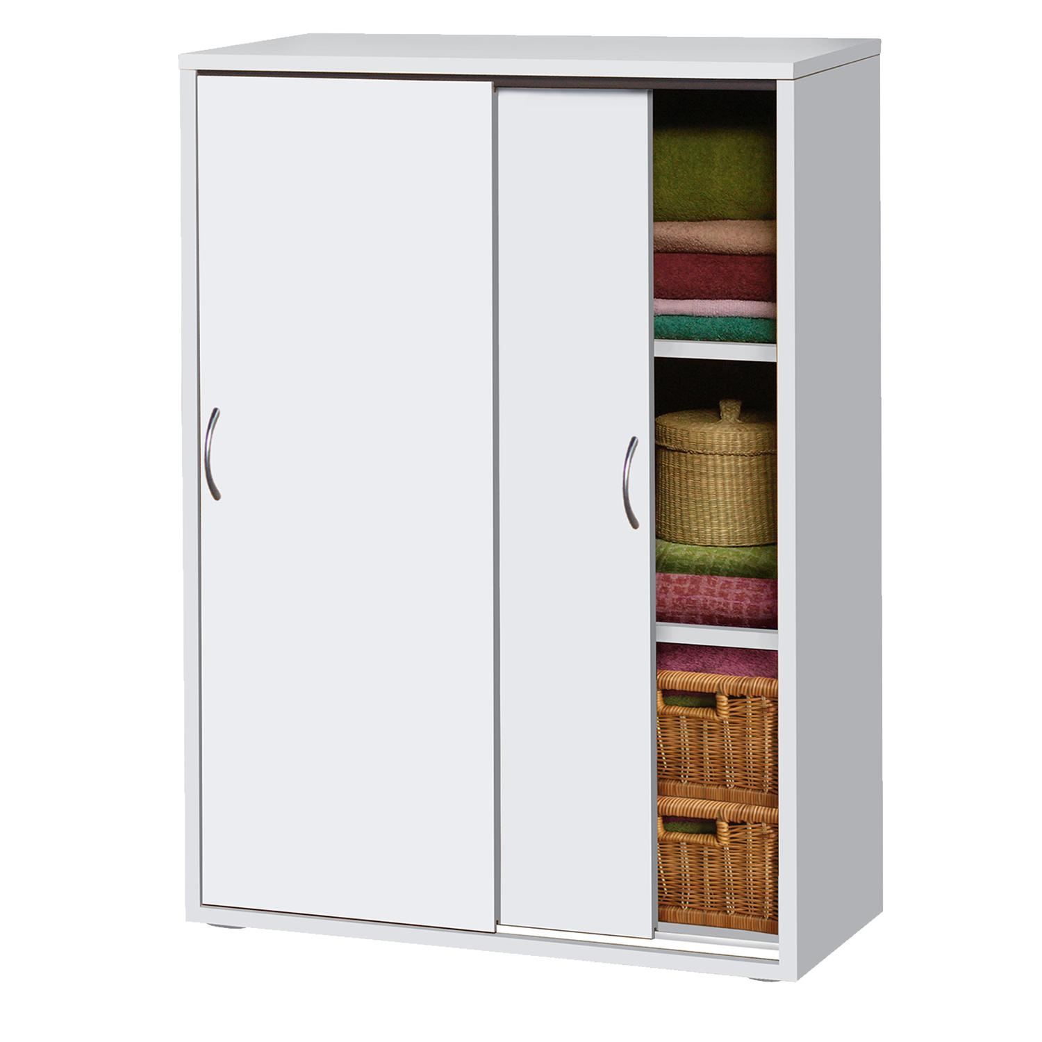 Vysoký skříňový prádelník v provedení bílá krásně zapadne, díky posuvným dvířkům, i do úzké chodby, šatny či ložnice a perfektně doplní skříně ve stejném barevném provedení. Skříňový šatník obsahuje dvě variabilní police, takže jej uzpůsobíte rozměrům vašich věcí. Velký prostor však lze zaplnit i krabicemi, boxy či prádelními koši a uspořádat tak drobnější věci i nejrůznější sezónní vybavení. Zboží je dodáváno v demontu.