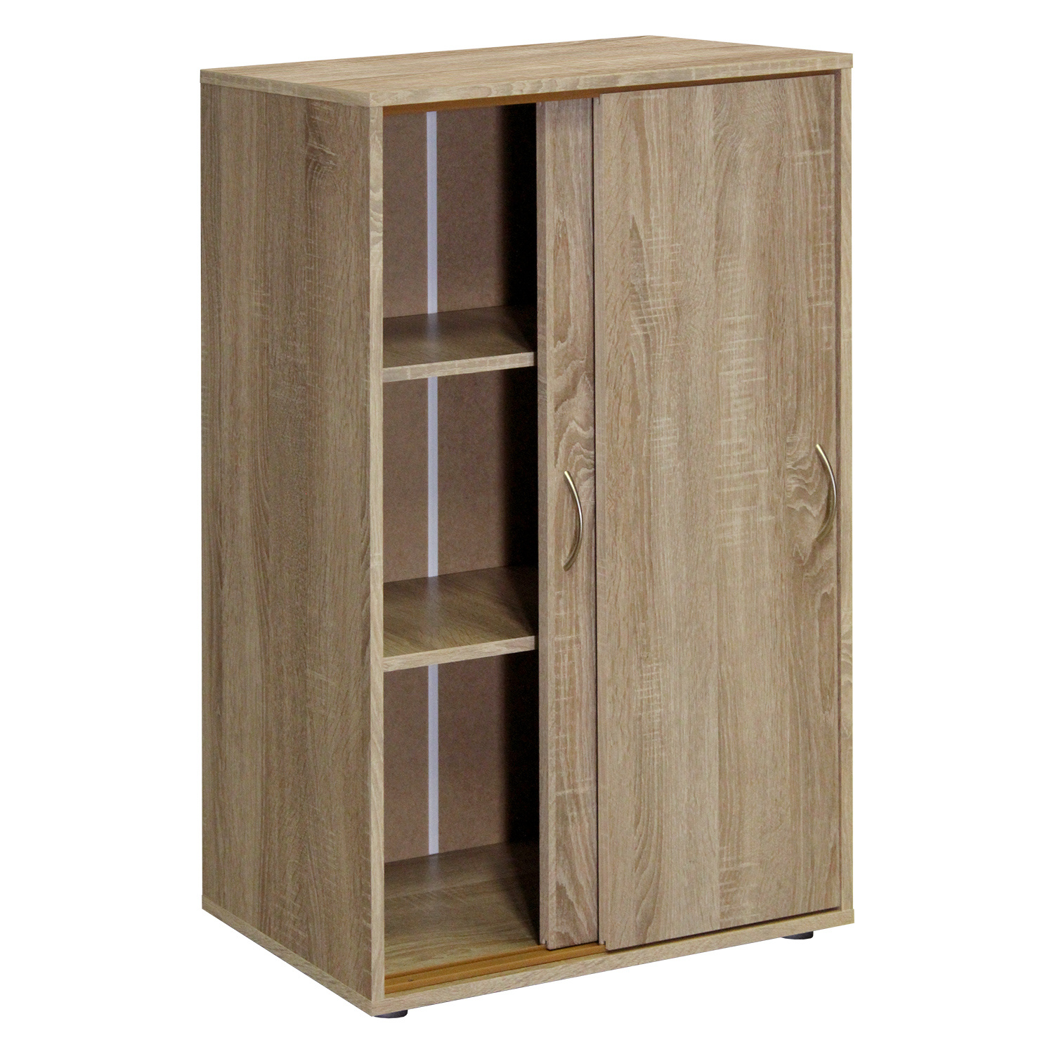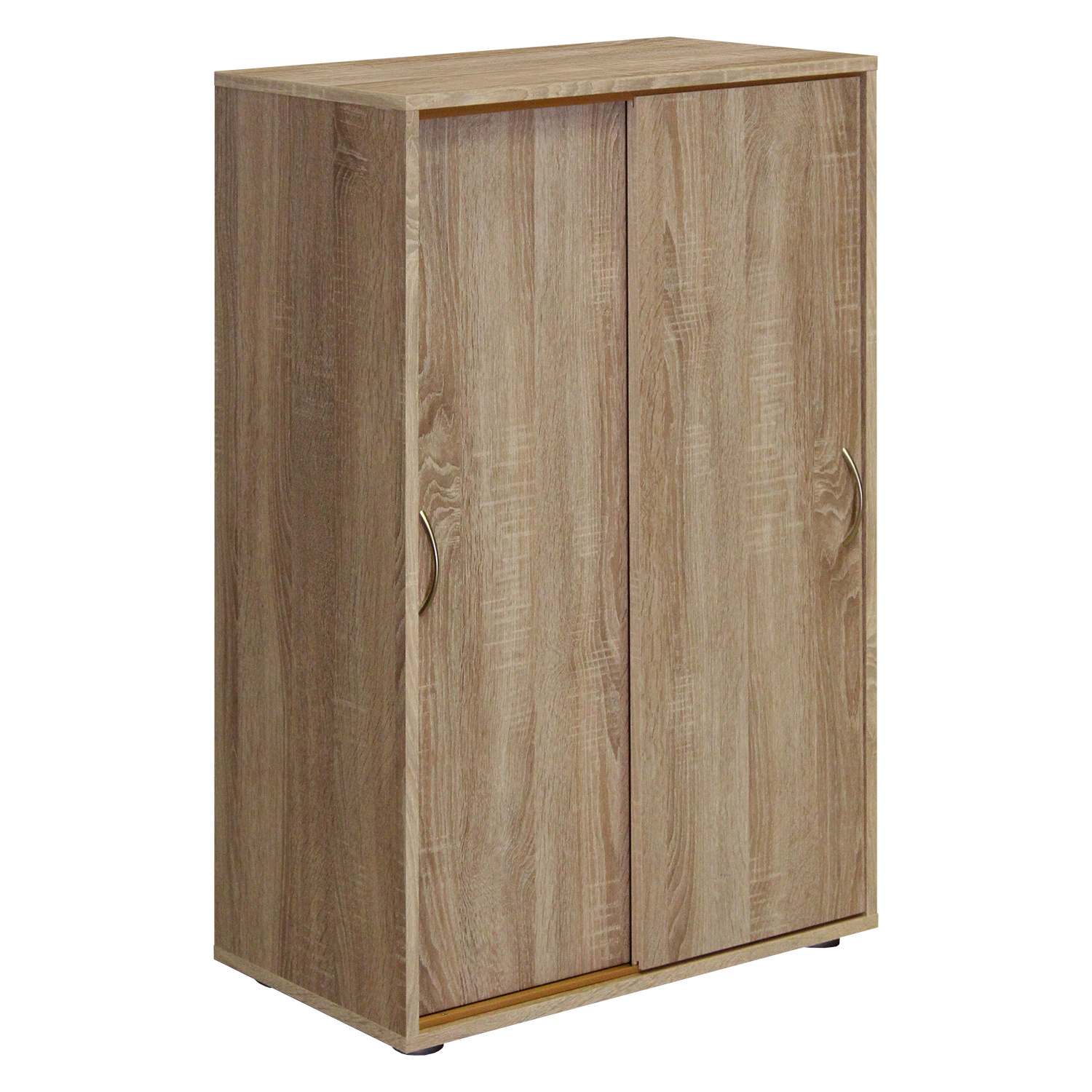 Jednoduchý prádelník je zhotoven z laminované dřevotřísky v barevném provedení dub. Prádelník má dvoje posuvná dvířka, za kterými nalezneme dvě variabilně nastavitelné police. Dvířka jsou opatřeny úchytkou. Prostorný prádelník najde své uplatnění v moderním i tradičním interiéru obývacích pokojů, jídelen. Zboží dodáváme v demontu.