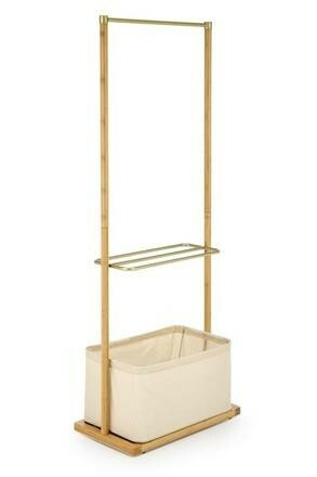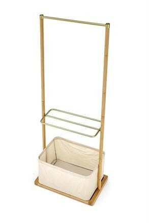 Moderní věšák WU31 je vyrobený z bambusu v přírodní barvě. Součástí je praktická police z prášlové oceli a látkový box. Dodávaný v demontu.