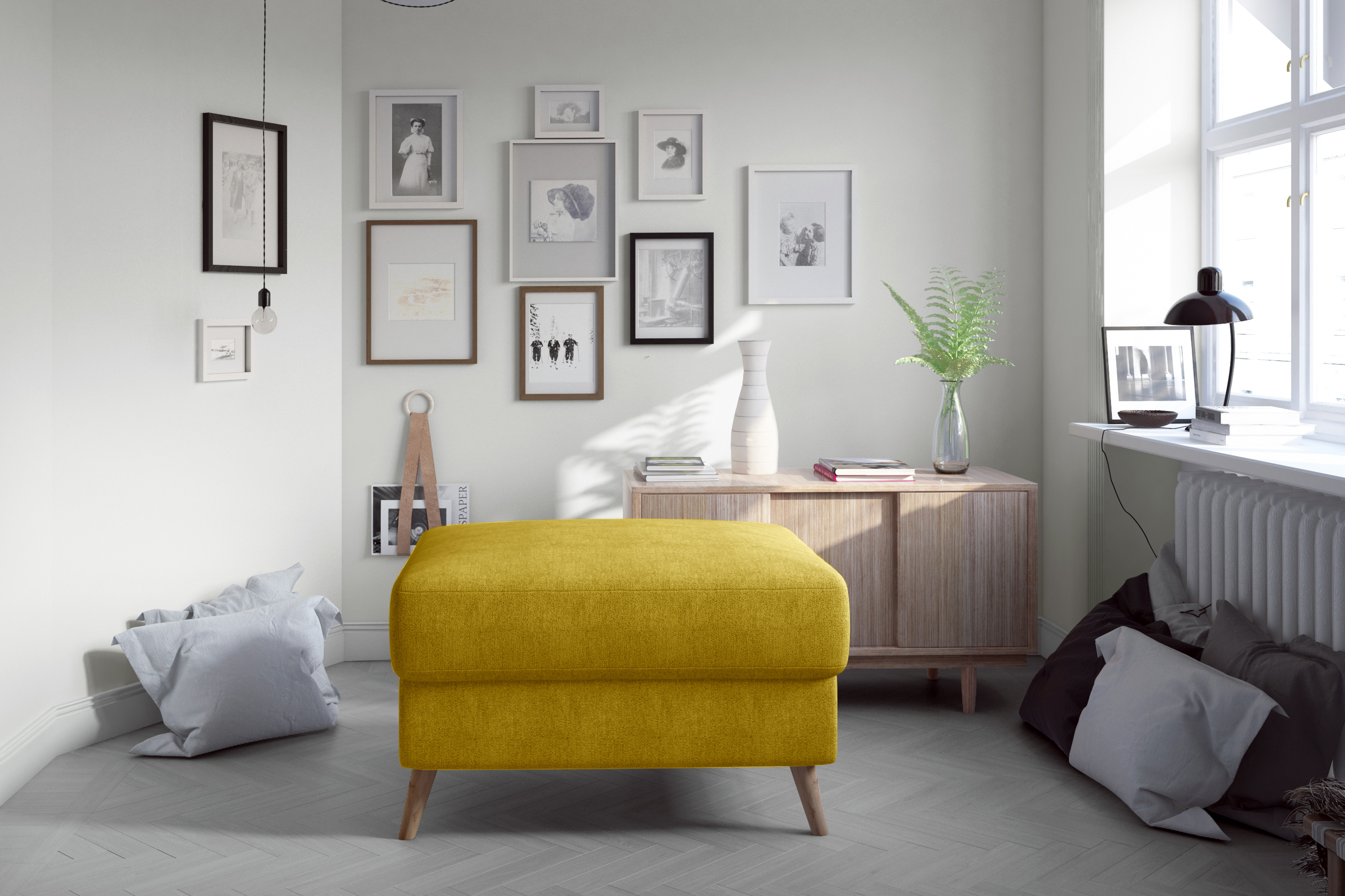 Taburet Asgard v provedení Omega 68 má sedák je vyplněn kvalitní polyuretanovou PUR pěnou a pružinou. Dřevěné nohy vysoké 16 cmí. Taburet je vhodná doplněk k pohovce nebo sedací soupravě Asgard.