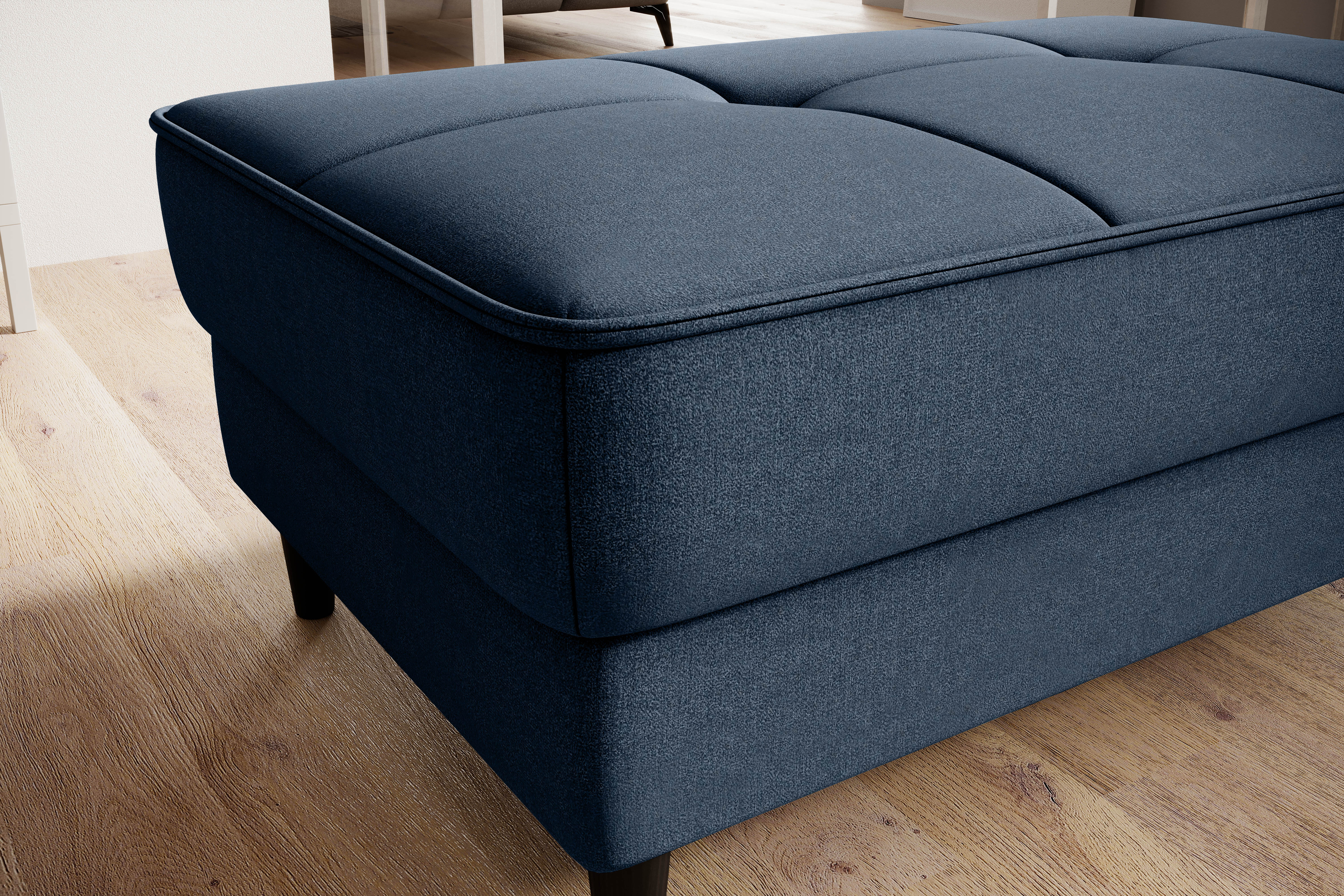 Taburet Bellis v dezénu Gojo 40 s výplní sedáku tvořenou HR pěnou a taštičkovými pružinami. Potahová látka Gojo: vysoká odolnost vůči dennímu světlu, nevybledne a zachová si původní barvy, nevytváří stínový vzhled, hedvábný vzhled. Ozdobné vyšívání sedáku. Taburet má úložný prostor o rozměru: š.87 x hl.53 x v.13 cm. Nosnost taburetu 80 kg. Dřevěné nohy v černé barvě jsou vysoké 11 cm. K taburetu možno zakoupit pohovku Bellis.