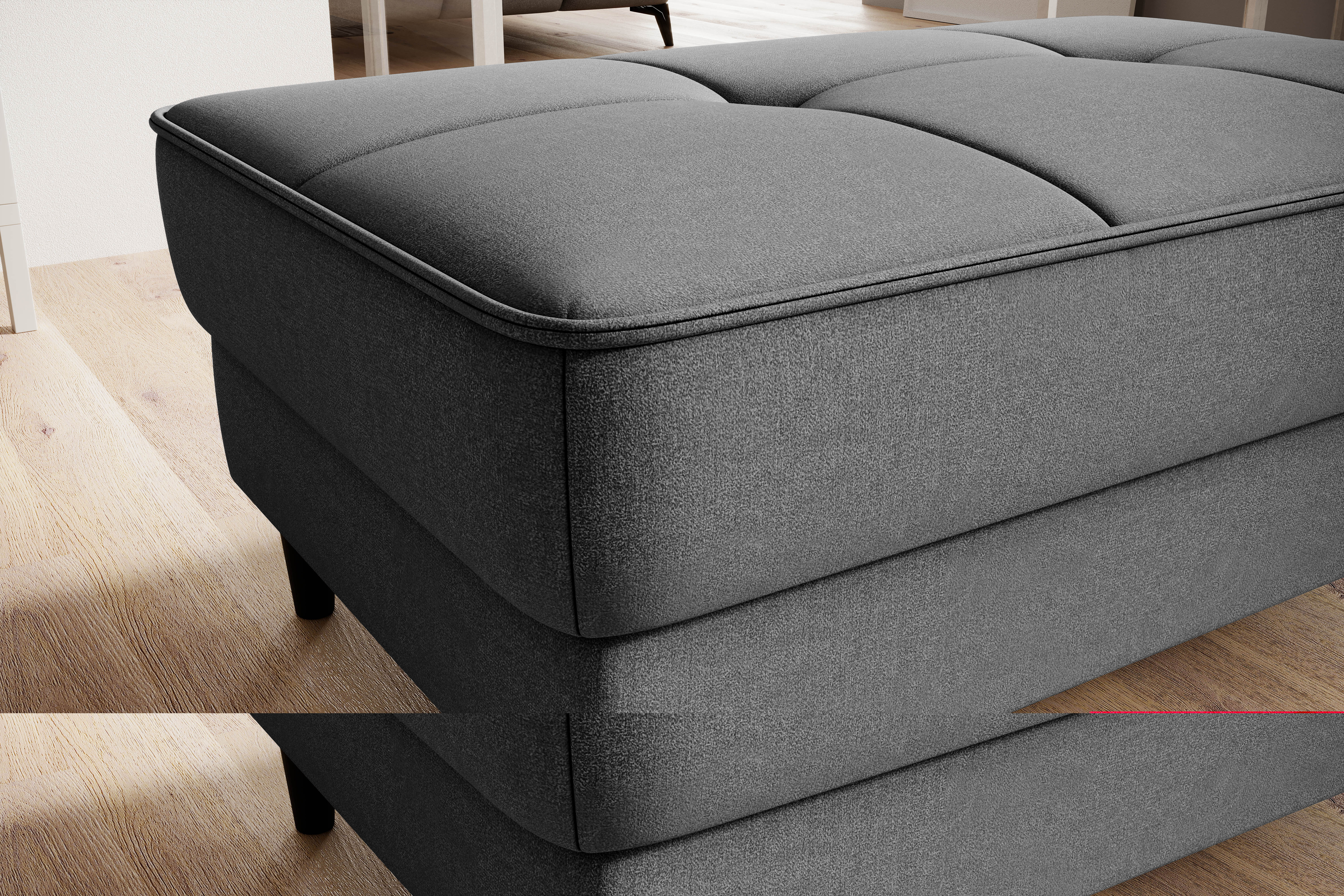 Taburet Bellis v dezénu Gojo 5 s výplní sedáku tvořenou HR pěnou a taštičkovými pružinami. Potahová látka Gojo: vysoká odolnost vůči dennímu světlu, nevybledne a zachová si původní barvy, nevytváří stínový vzhled, hedvábný vzhled. Ozdobné vyšívání sedáku. Taburet má úložný prostor o rozměru: š.87 x hl.53 x v.13 cm. Nosnost taburetu 80 kg. Dřevěné nohy v černé barvě jsou vysoké 11 cm. K taburetu možno zakoupit pohovku Bellis.