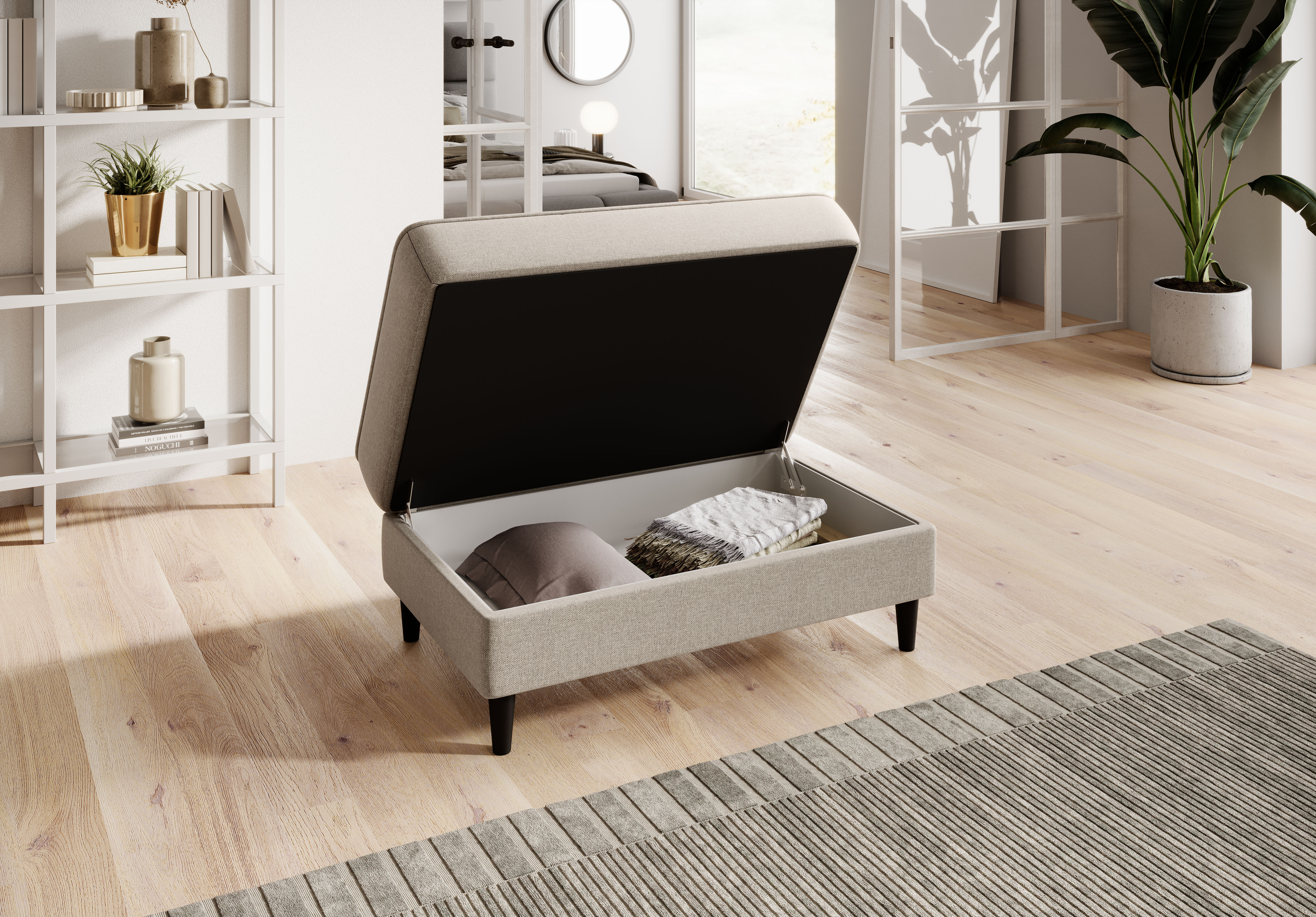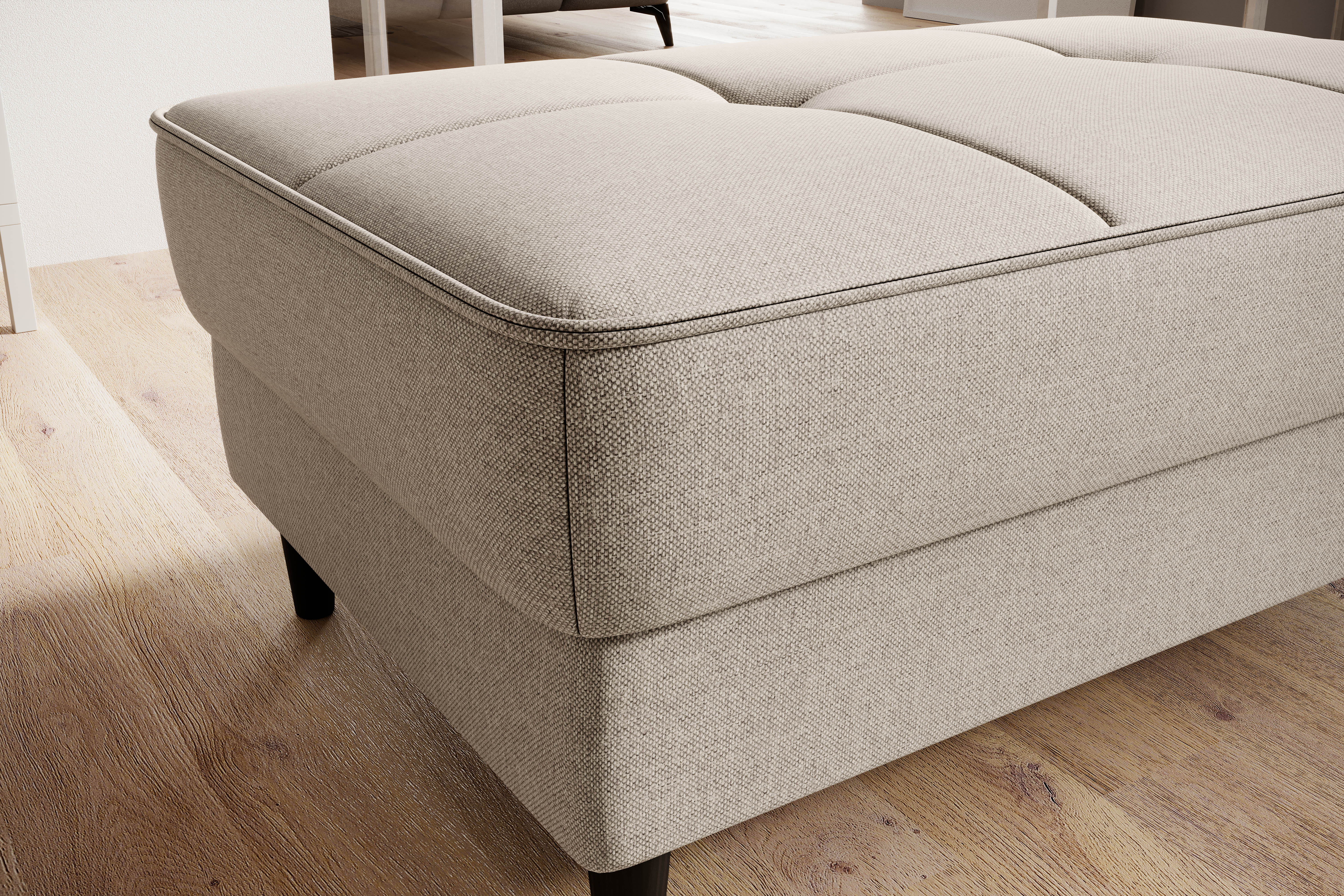 Taburet Bellis v dezénu Inari 22 s výplní sedáku tvořenou HR pěnou a taštičkovými pružinami. Potahová látka Inari: vysoká odolnost proti oděru a vyblednutí, nitě různých odstínů dělají materiál mnohobarevný. Taburet má úložný prostor o rozměru: š.87 x hl.53 x v.13 cm. Nosnost taburetu 80 kg. Dřevěné nohy v černé barvě jsou vysoké 11 cm. K taburetu možno zakoupit pohovku Bellis.