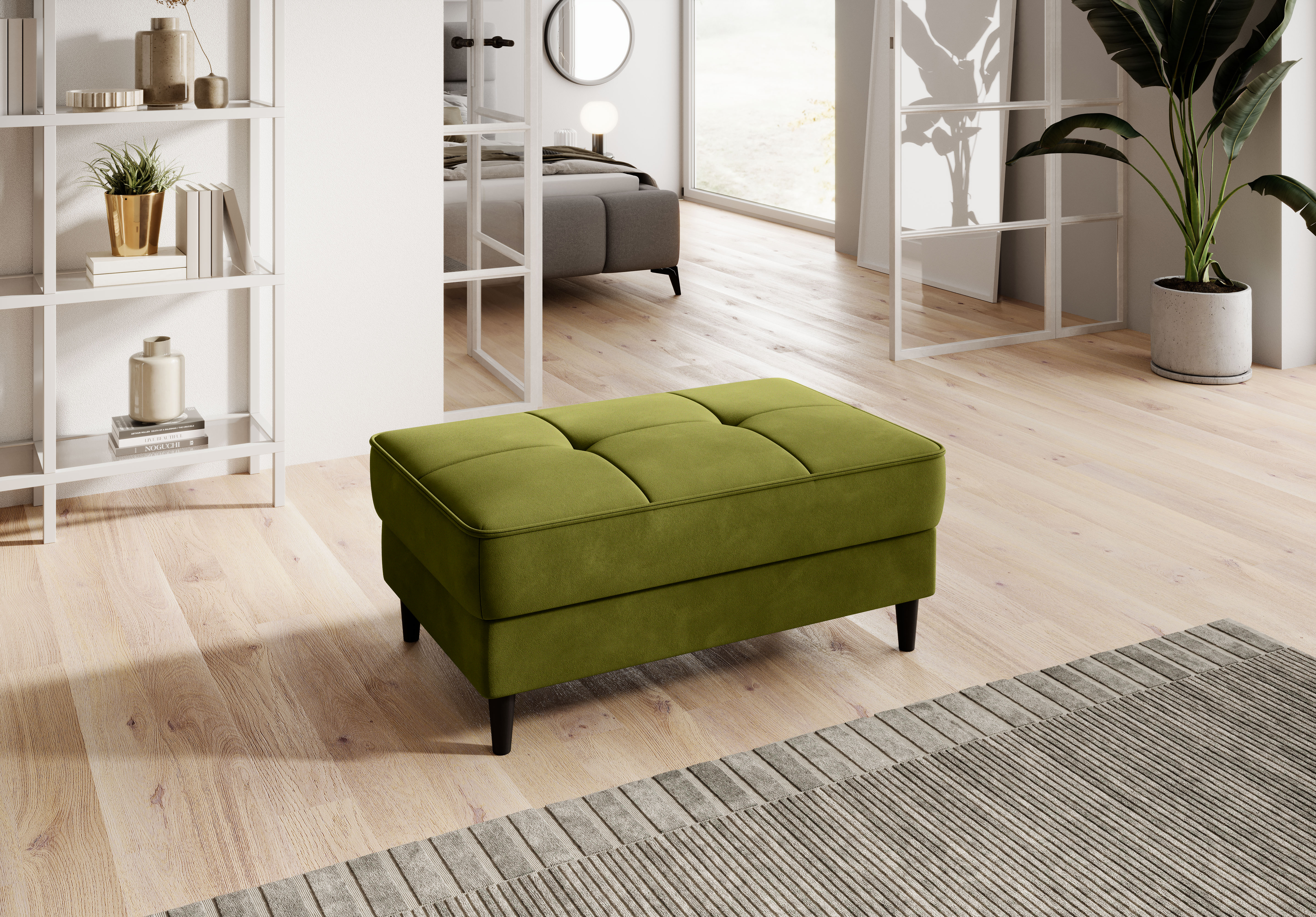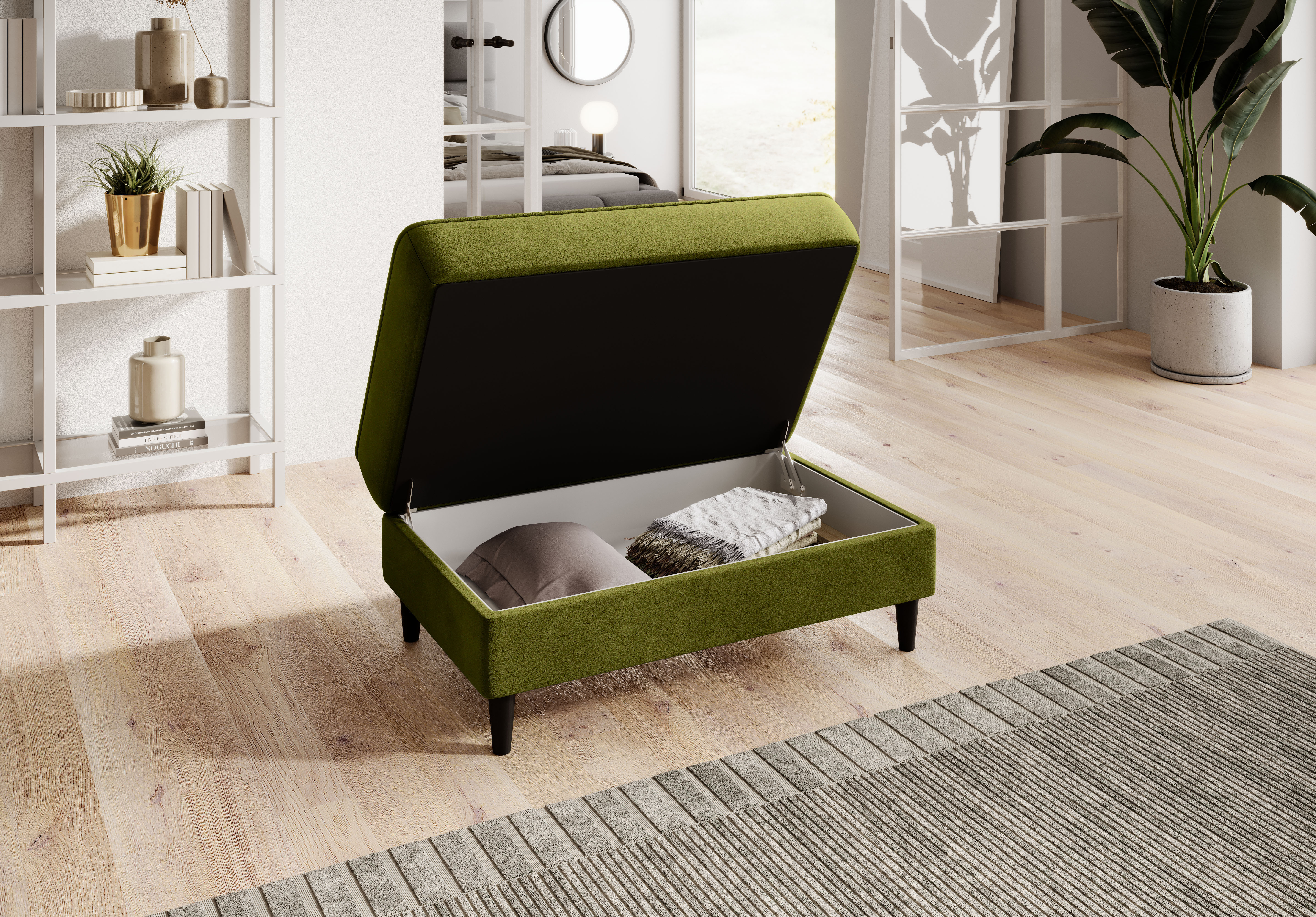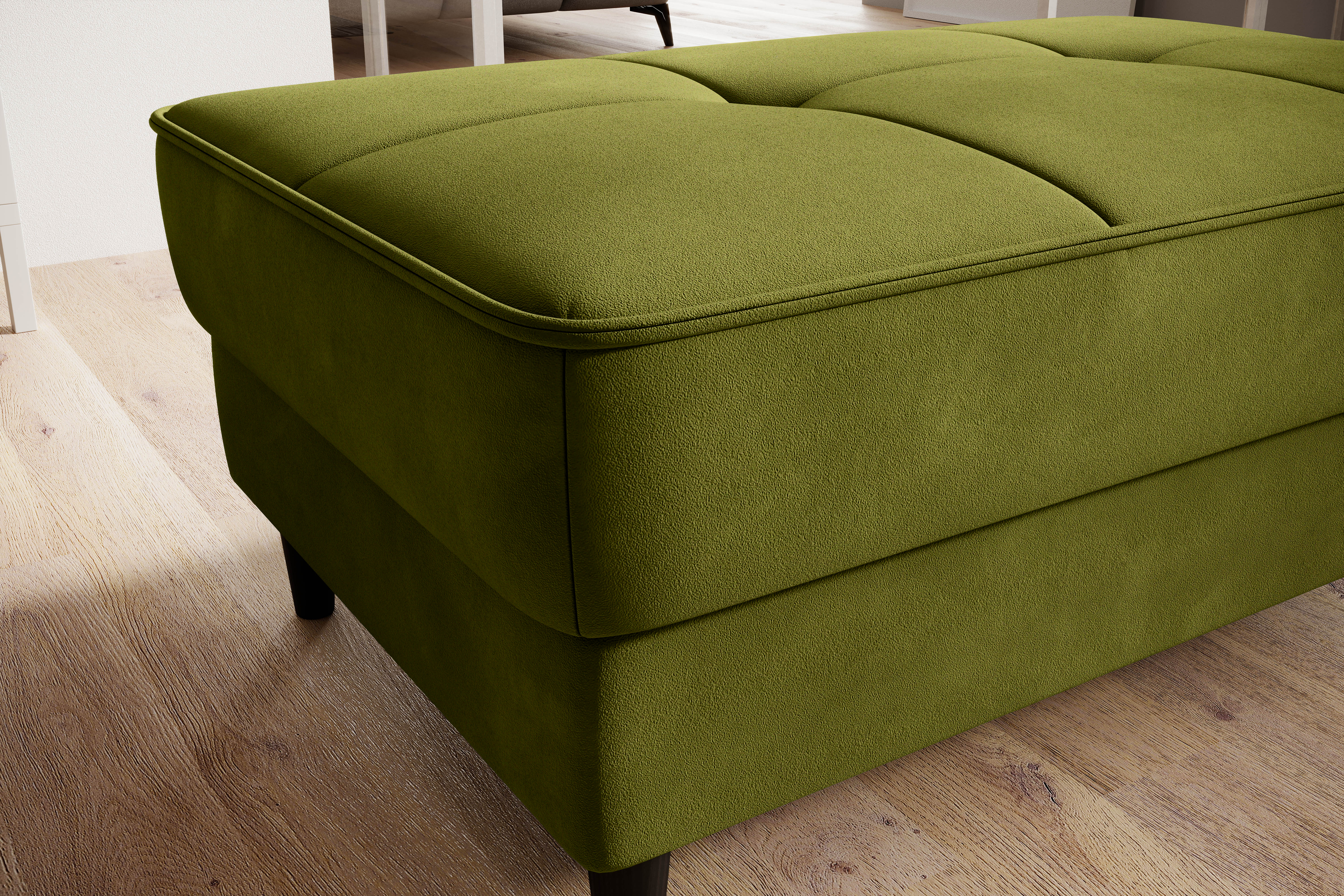 Taburet Bellis v dezénu Loco 33 s výplní sedáku tvořenou HR pěnou a taštičkovými pružinami. Potahová látka Loco: látka příjemná na dotek, připomíná samet, nevybledne, stínový vzhled, mírný lesk. Taburet má úložný prostor o rozměru: š.87 x hl.53 x v.13 cm. Nosnost taburetu 80 kg. Dřevěné nohy v černé barvě jsou vysoké 11 cm. K taburetu možno zakoupit pohovku Bellis.