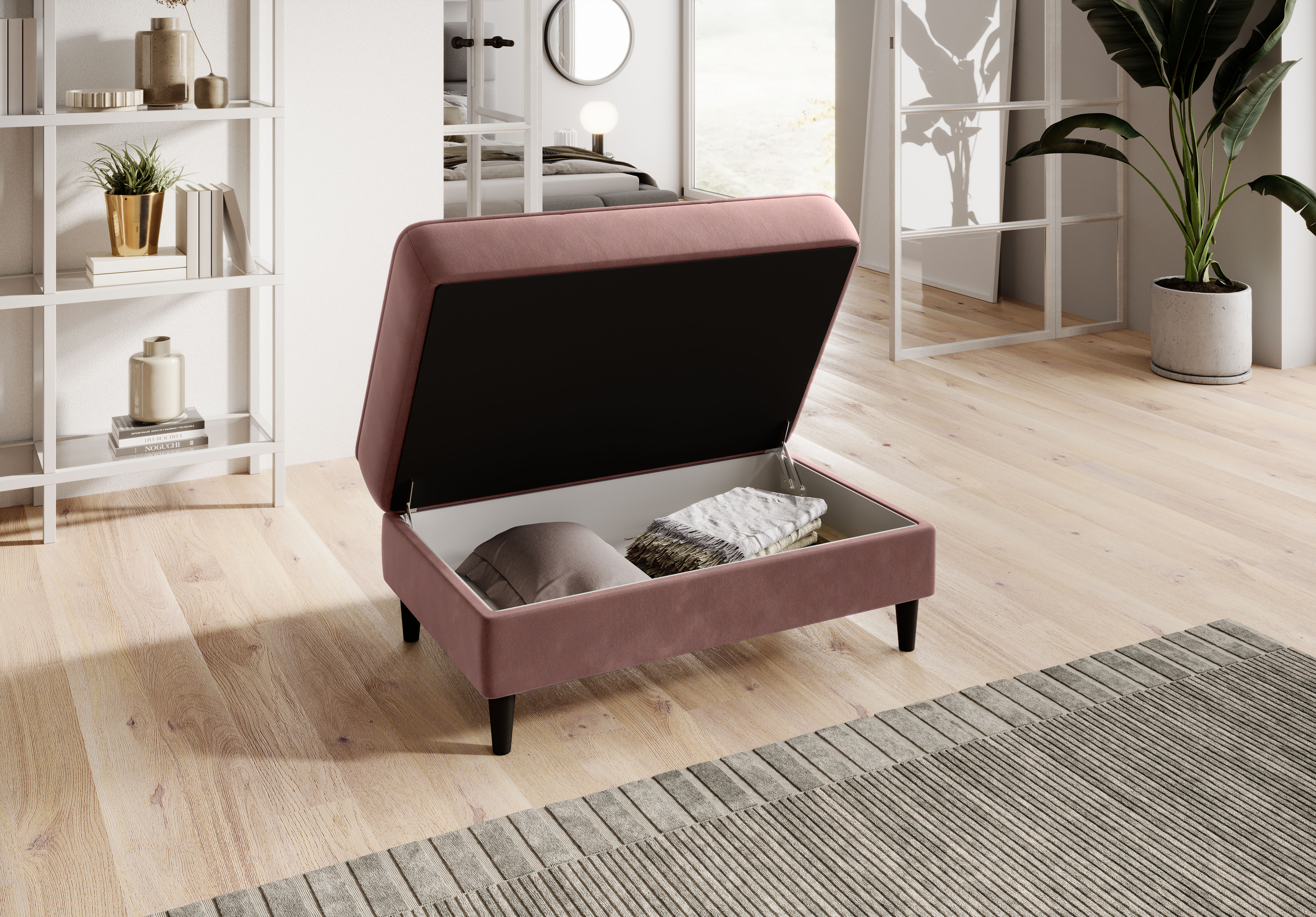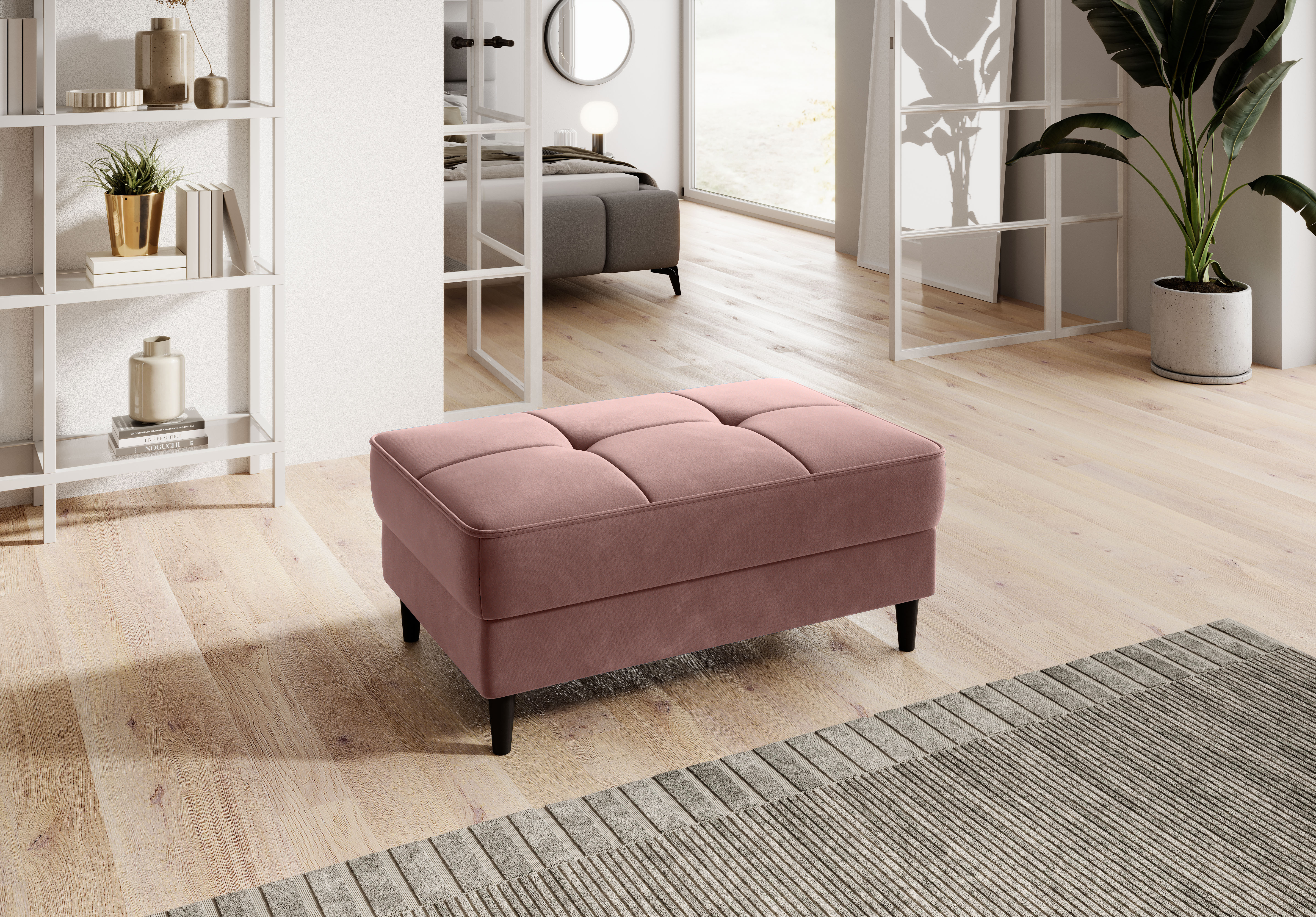 Taburet Bellis v dezénu Lukso 24 s výplní sedáku tvořenou HR pěnou a taštičkovými pružinami. Potahová látka Inari: vysoká odolnost proti oděru a vyblednutí, nitě různých odstínů dělají materiál mnohobarevný. Taburet má úložný prostor o rozměru: š.87 x hl.53 x v.13 cm. Nosnost taburetu 80 kg. Dřevěné nohy v černé barvě jsou vysoké 11 cm. K taburetu možno zakoupit pohovku Bellis.
