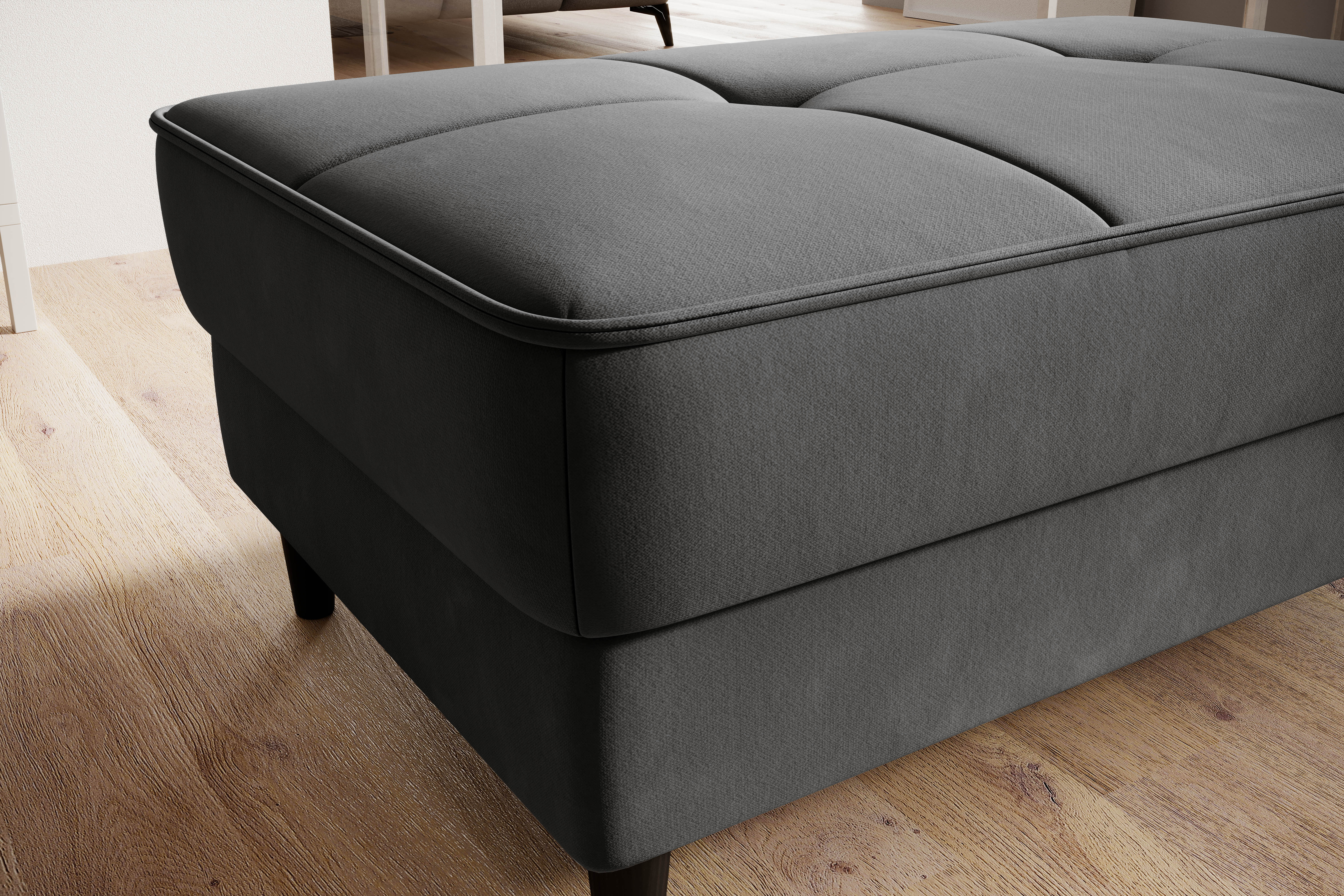Taburet Bellis v dezénu Sola 6 s výplní sedáku tvořenou HR pěnou a taštičkovými pružinami. Potahová látka Sola: lesklý vzhled a jemná vazba, pevná a odolná proti oděru, nebledne bez stínového efektu po přejetí rukou. Taburet má úložný prostor o rozměru: š.87 x hl.53 x v.13 cm. Nosnost taburetu 80 kg. Dřevěné nohy v černé barvě jsou vysoké 11 cm. K taburetu možno zakoupit pohovku Bellis.