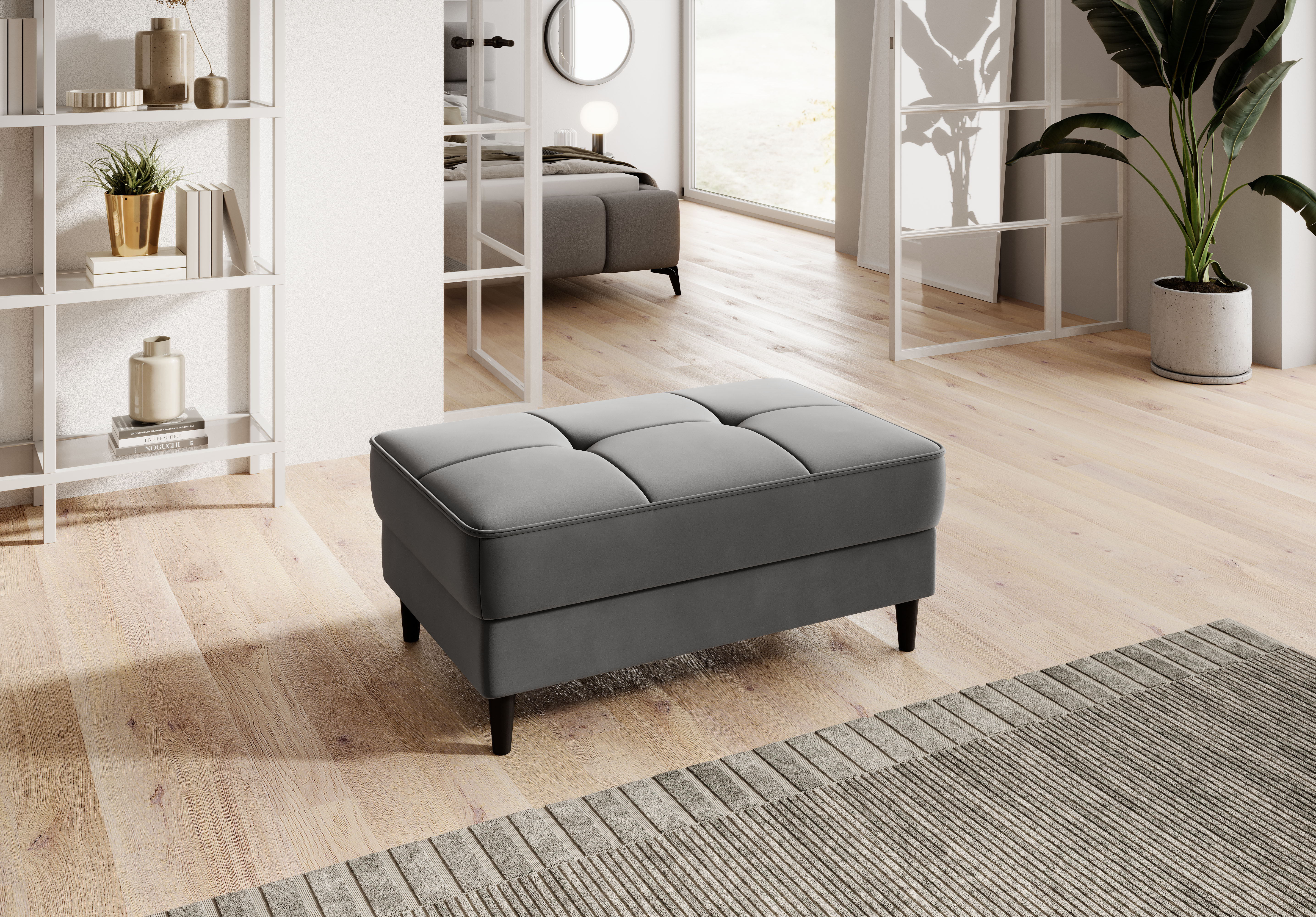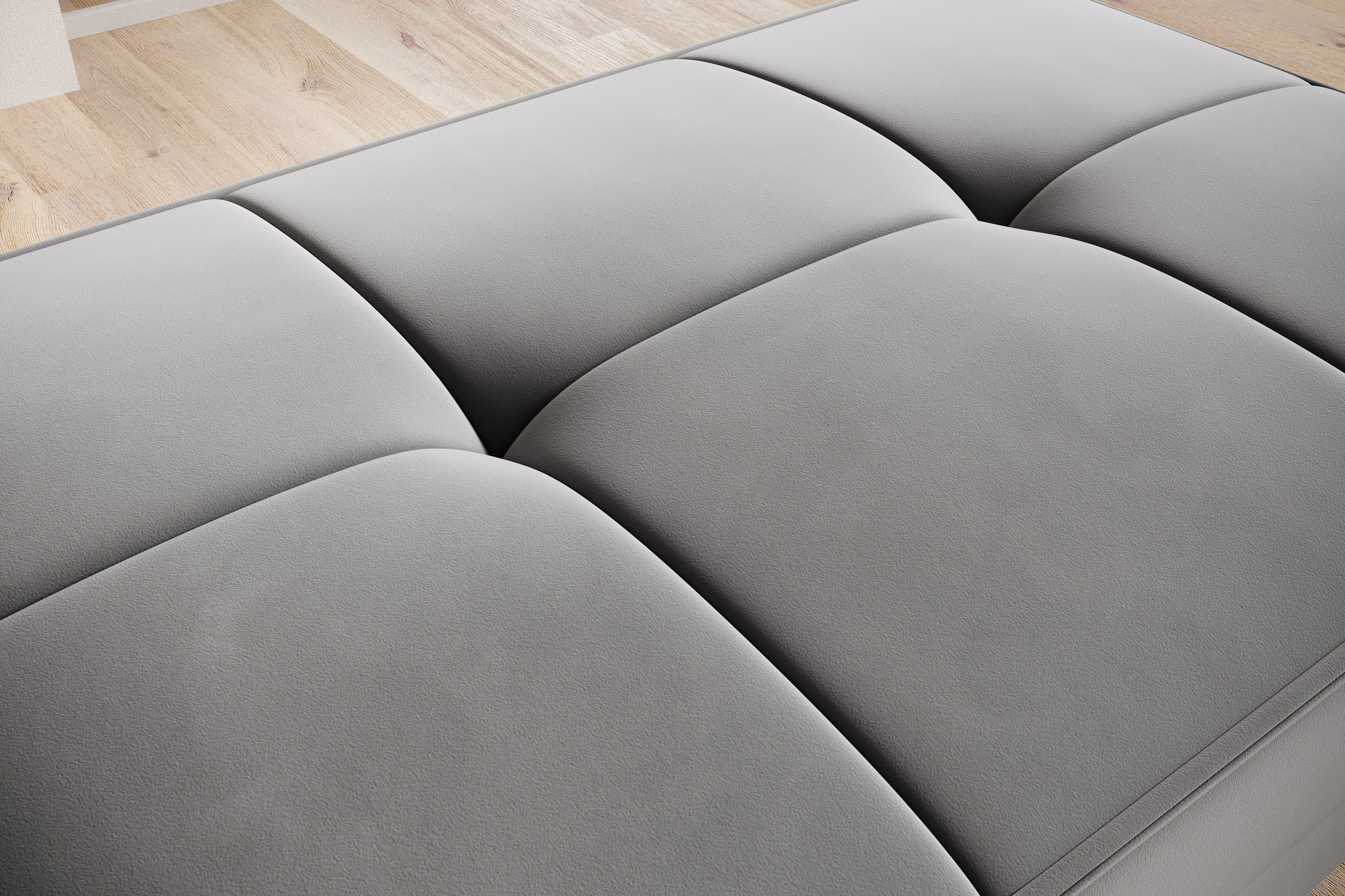 Taburet Bellis v dezénu Velvetmat 04 s výplní sedáku tvořenou HR pěnou a taštičkovými pružinami. Potahová látka Velvet Mat: velice jemná struktura, hebká, odolná, nevytváří stínový efekt po přejetí rukou, voděodolná. Taburet má úložný prostor o rozměru: š.87 x hl.53 x v.13 cm. Nosnost taburetu 80 kg. Dřevěné nohy v černé barvě jsou vysoké 11 cm. K taburetu možno zakoupit pohovku Bellis.