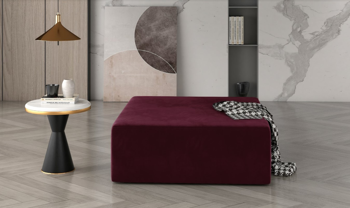 Čalouněný taburet KELIM, díky jednoduchým liniím snadno zapadne do každého interiéru. Disponuje prostornou sedací plochou v dezénu vínové. Celý taburet je potažen kvalitní potahovou látkou, která je příjemná na dotek. Taburet vyplňuje HR pěna, díky ní poslouží jako pohodlná opěrka pro nohy nebo místo k sezení navíc. Vybírat můžete z více nabízených barevných variant.