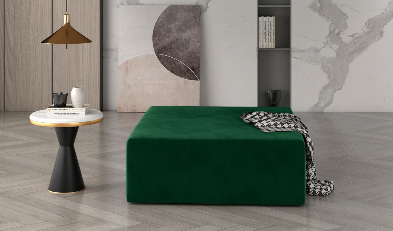 Čalouněný taburet KELIM, díky jednoduchým liniím snadno zapadne do každého interiéru. Disponuje prostornou sedací plochou v dezénu zeleném. Celý taburet je potažen kvalitní potahovou látkou, která je příjemná na dotek. Taburet vyplňuje HR pěna, díky ní poslouží jako pohodlná opěrka pro nohy nebo místo k sezení navíc. Vybírat můžete z více nabízených barevných variant.