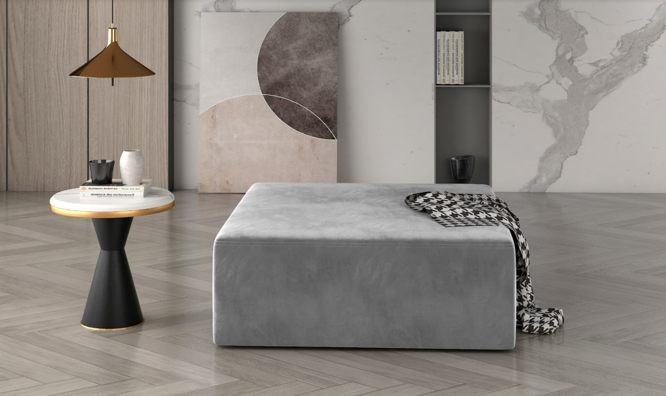 Čalouněný taburet KELIM, díky jednoduchým liniím snadno zapadne do každého interiéru. Disponuje prostornou sedací plochou v dezénu šedém. Celý taburet je potažen kvalitní potahovou látkou, která je příjemná na dotek. Taburet vyplňuje HR pěna, díky ní poslouží jako pohodlná opěrka pro nohy nebo místo k sezení navíc. Vybírat můžete z více nabízených barevných variant.
