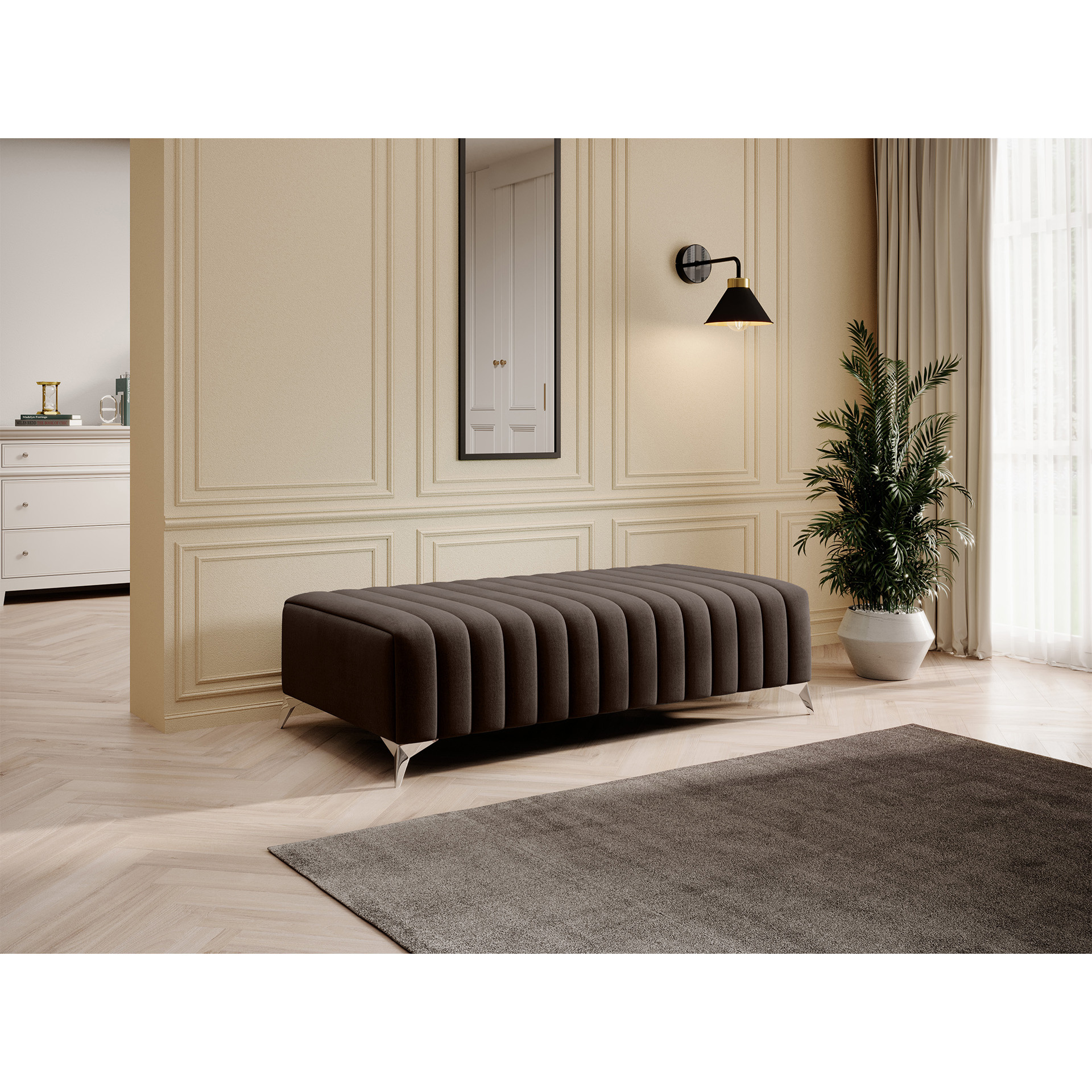 Taburet Laurence v dezénu Nube 22 má sedátko vyrobené ze 3 druhů pěn. Najdete zde HR pěnu , která se vyznačuje vysokou pružností a odolností, dále pěnu T3030 a pěnu T2130 . Společně tyto komponenty dodají nábytku nebývalou měkkost a dodají vám příjemný pocit při relaxaci. Látka Nube: odolná a pevná, hladký povrch s odleskem, voděodolná. Nakonec byl jeho vnitřek obohacen o dva různé typy pružin: vlnové pružiny typu B a taštičkové pružiny. Taburet má také pevné 9 cm vysoké nohy z chromované oceli. Taburet je vhodný doplněk k sedací soupravě, pohovce nebo křeslu Laurence.