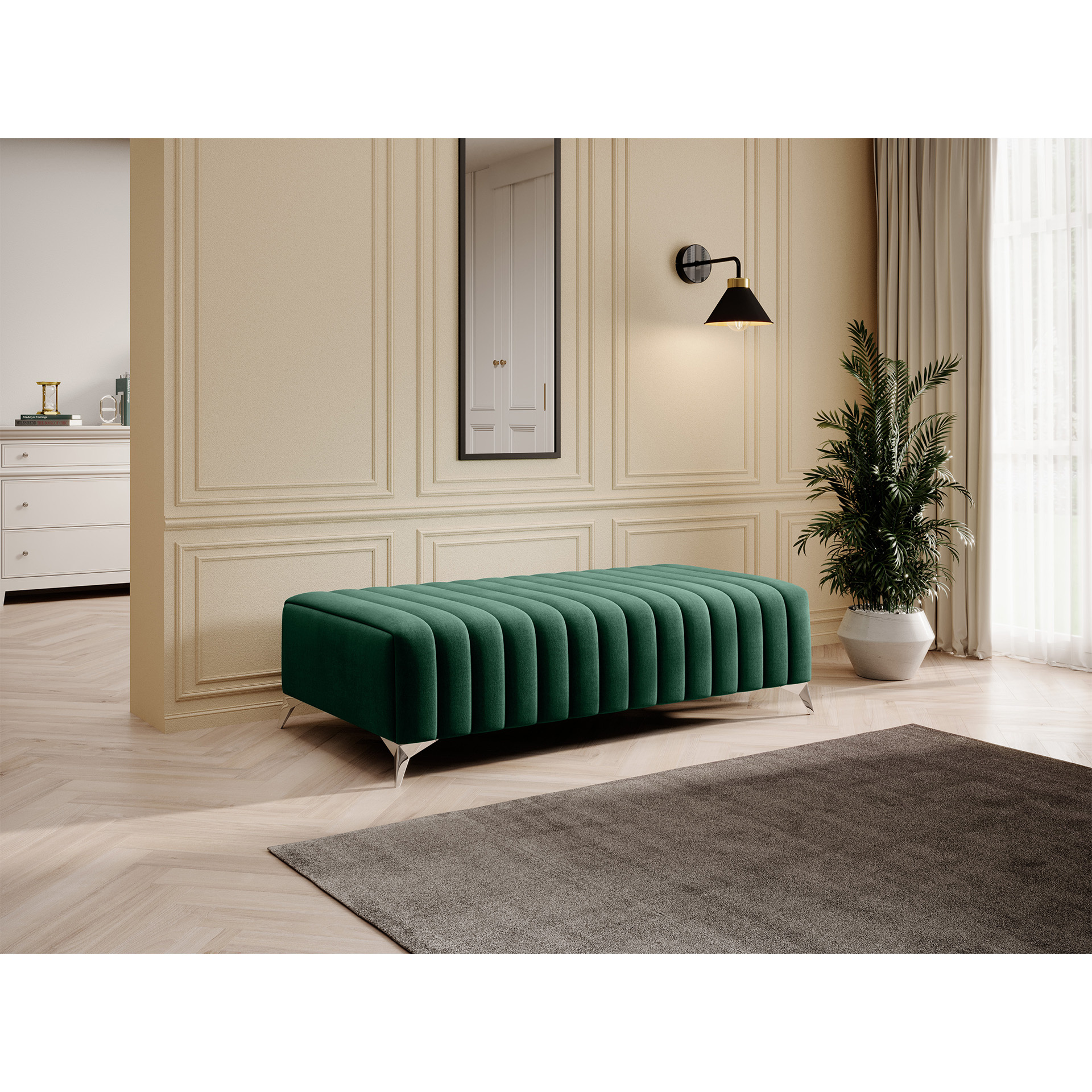 Taburet Laurence v dezénu Nube 35 má sedátko vyrobené ze 3 druhů pěn. Najdete zde HR pěnu , která se vyznačuje vysokou pružností a odolností, dále pěnu T3030 a pěnu T2130 . Společně tyto komponenty dodají nábytku nebývalou měkkost a dodají vám příjemný pocit při relaxaci. Látka Nube: odolná a pevná, hladký povrch s odleskem, voděodolná. Nakonec byl jeho vnitřek obohacen o dva různé typy pružin: vlnové pružiny typu B a taštičkové pružiny. Taburet má také pevné 9 cm vysoké nohy z chromované oceli. Taburet je vhodný doplněk k sedací soupravě, pohovce nebo křeslu Laurence.