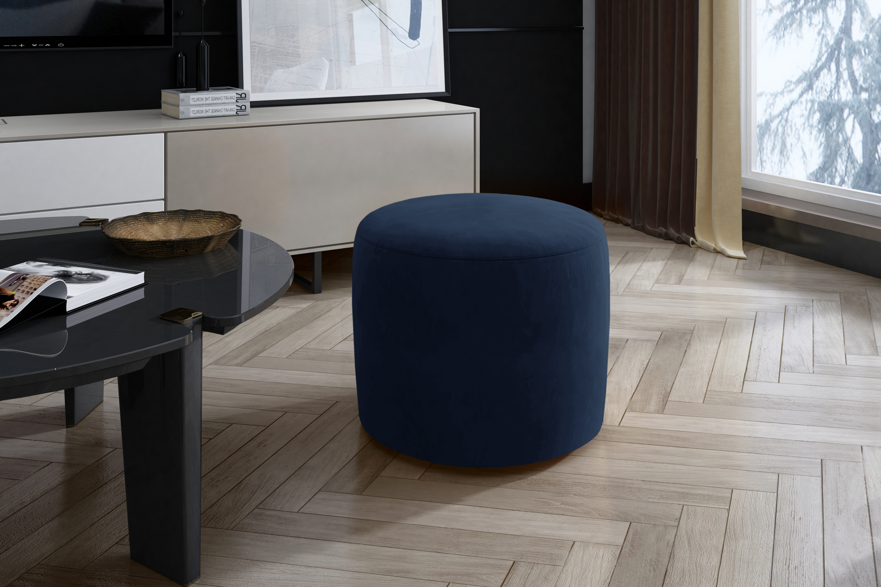 Taburet v dezénu Monolith 77 má klasický kulatý dřevěný rám a pěnovou výplň HR pěnou. Potahová látka Monolith: příjemná látka s vysokou odolností, voděodolná, odolná proti vyblednutí a žmolkování, látka po přejetí rukou stínuje. Ze spodní strany taburetu jsou umístěny nožky vysoké 1 cm.