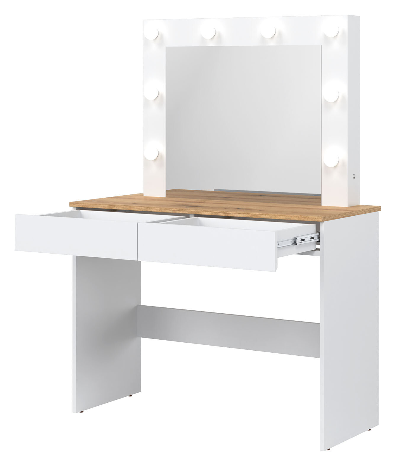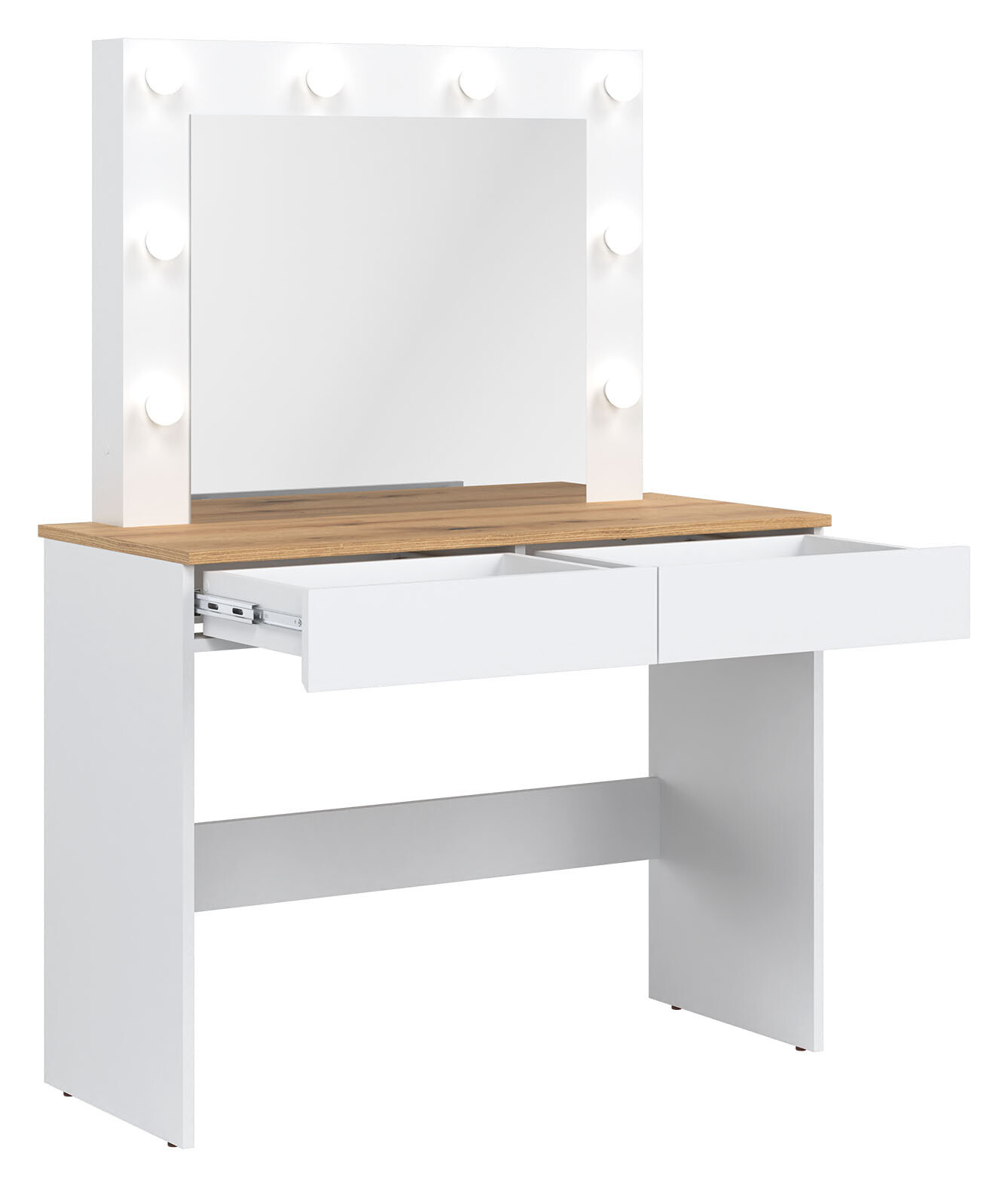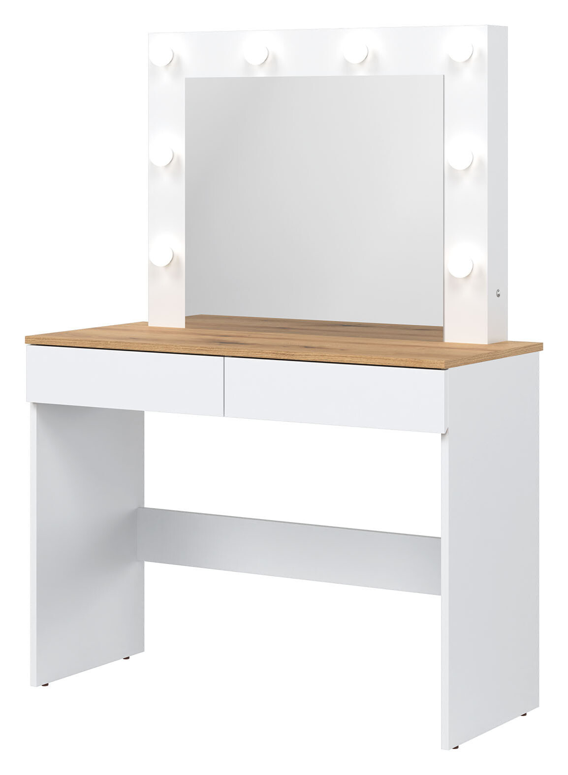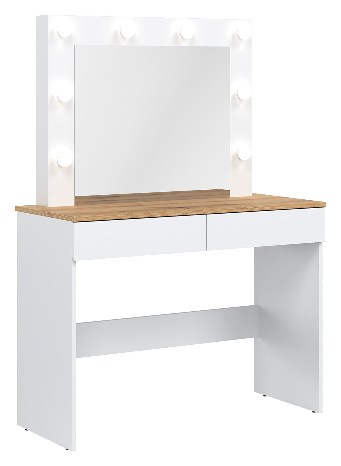 Toaletní stolek REMI RM16 s LED podsvícením bílá/dub evoke
