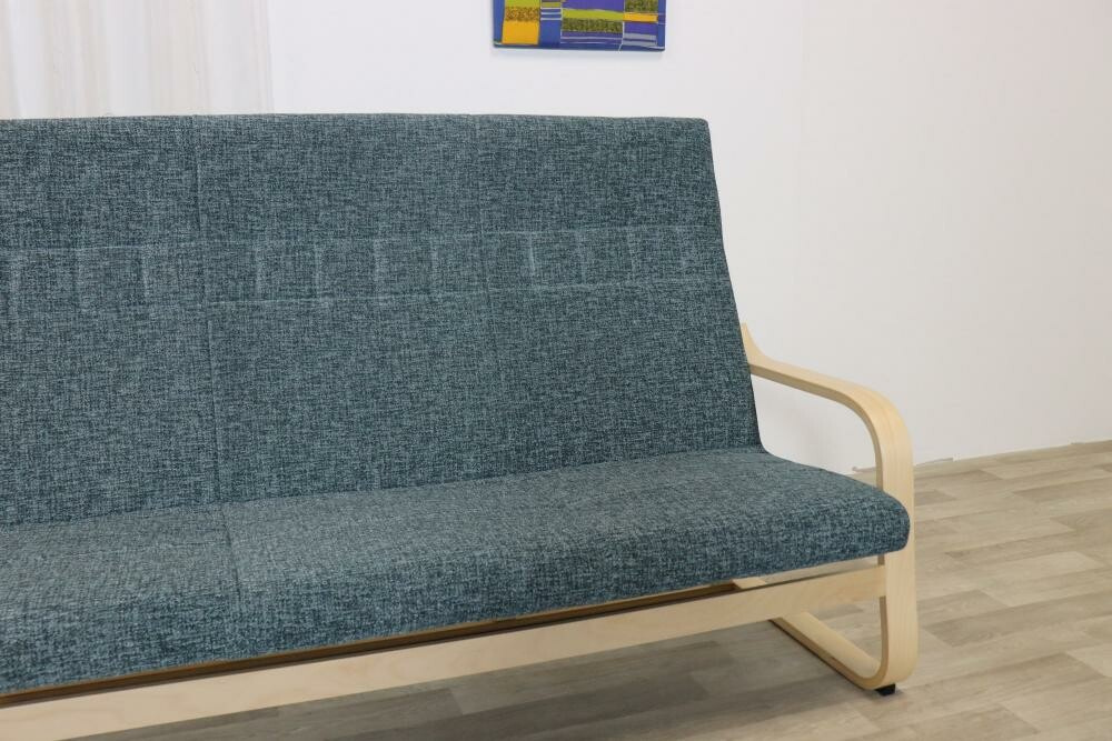 Kostra čalouněného trojkřesla Robin, která je tvořena kovovým rámem, sedadlové plochy s tuženou PUR výplní, opěradla s PUR výplní. Podnož je vyrobená z lamelovaných dřevěných profilů. K dvojkřeslu lze dokoupit čalouněné návleky.